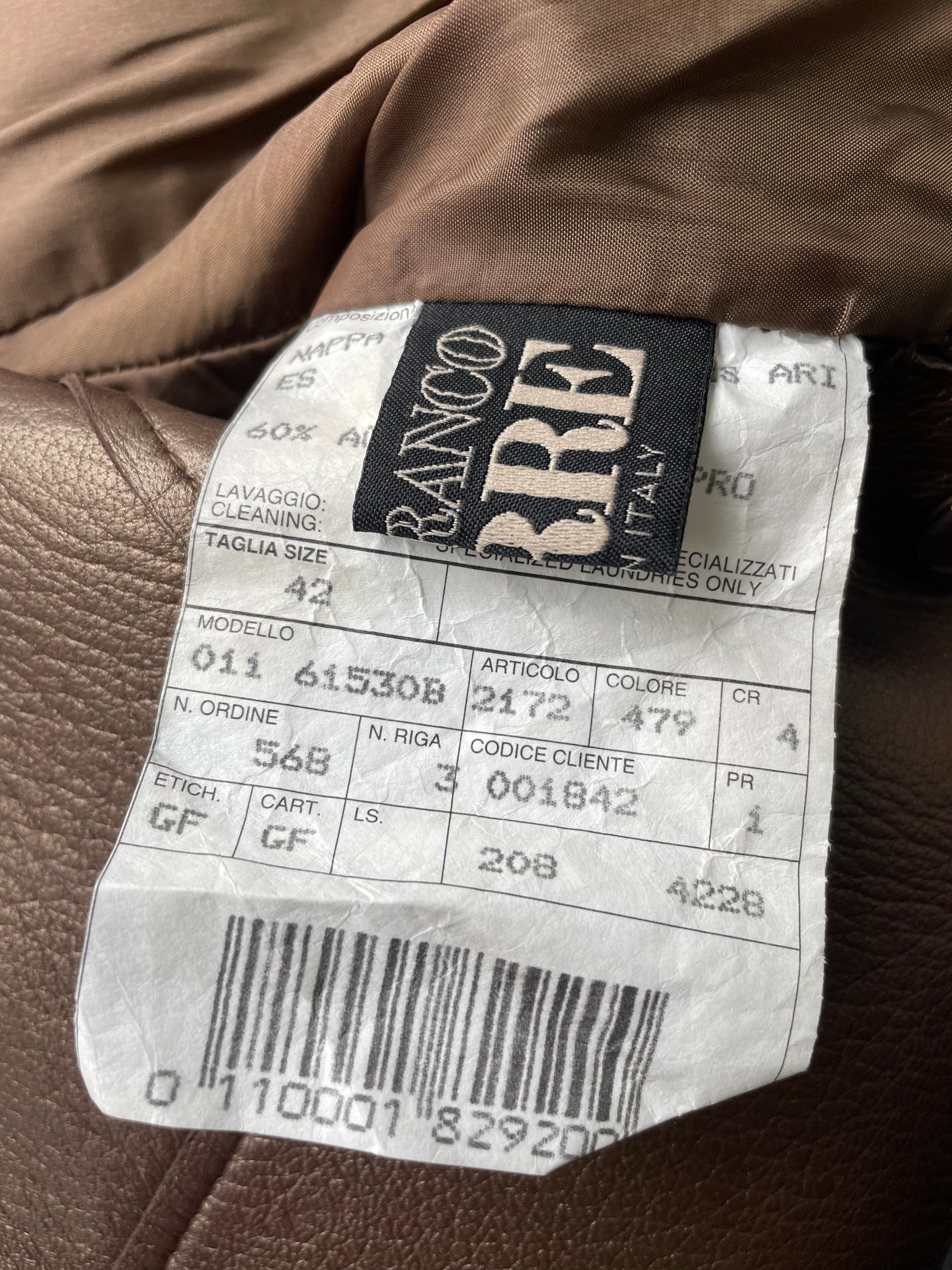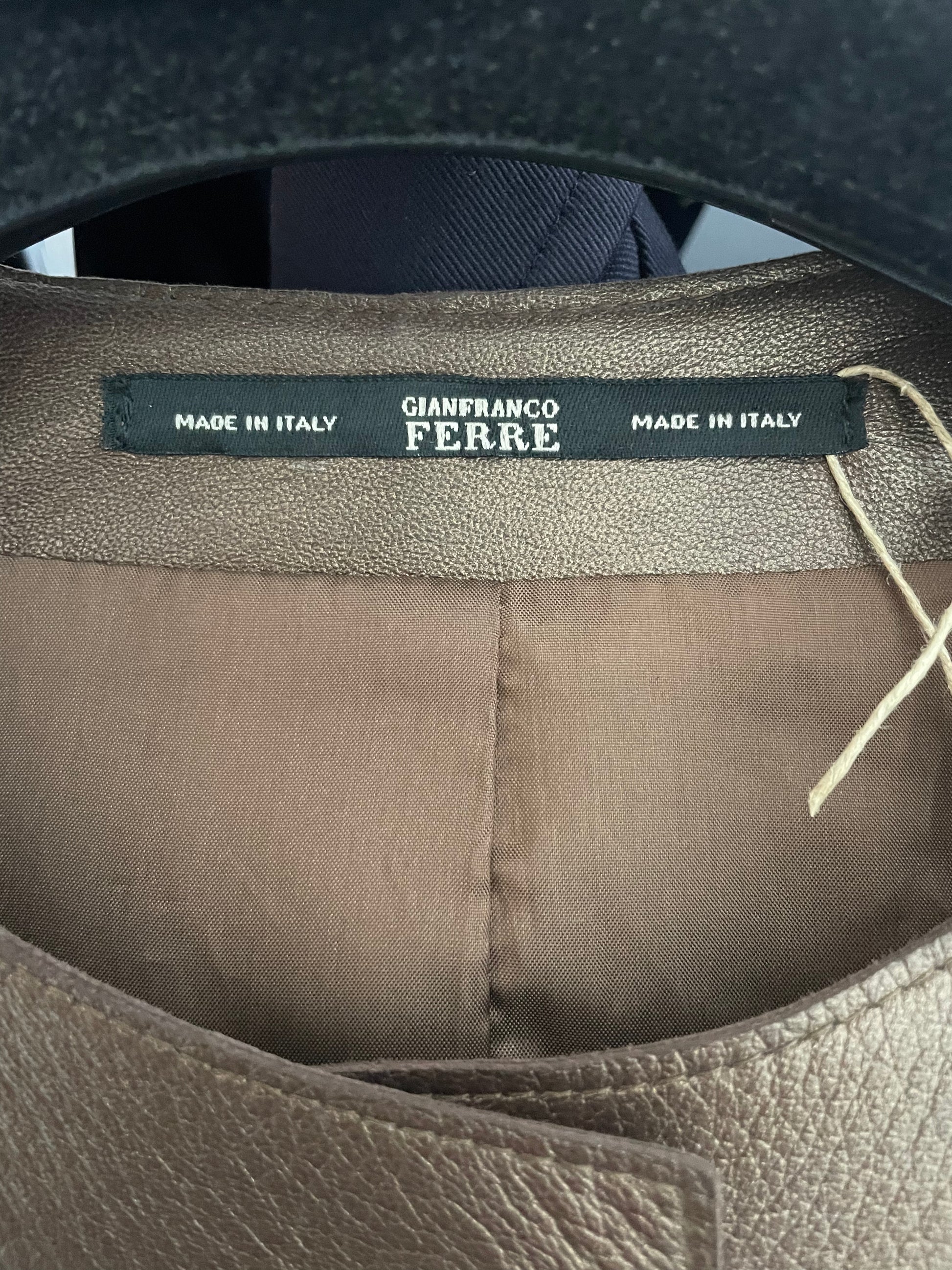 This is the case of this incredible Gianfranco Ferre leather jacket. Unique in its design, this jacket is made from the softest, highest quality lamb nappa leather, and then dyed in the most striking bronze color.