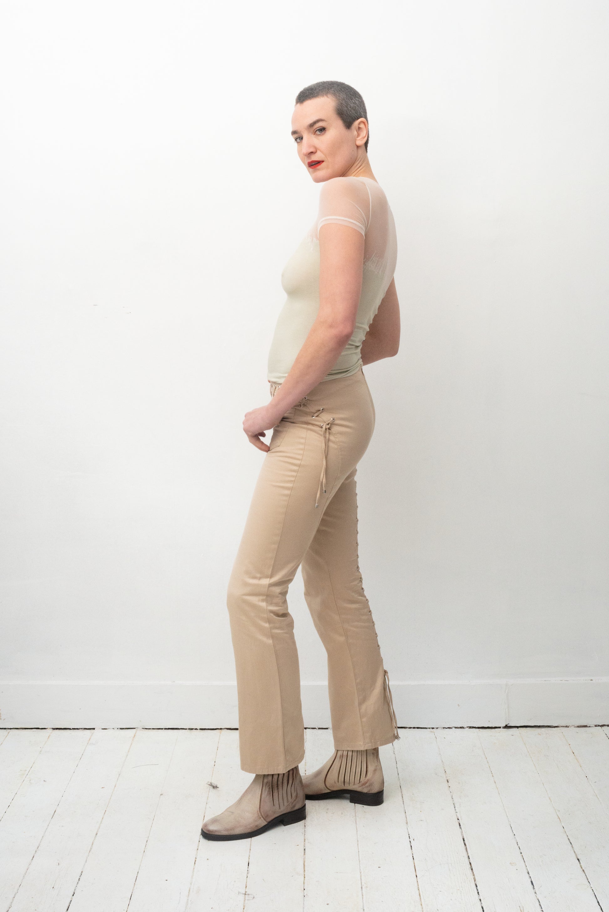 Gianfranco Ferre 90's beige laced up trousers