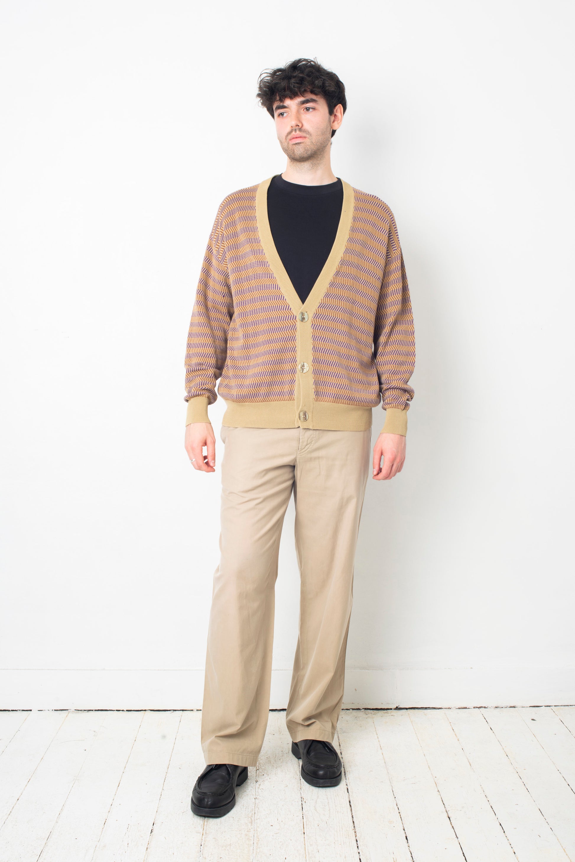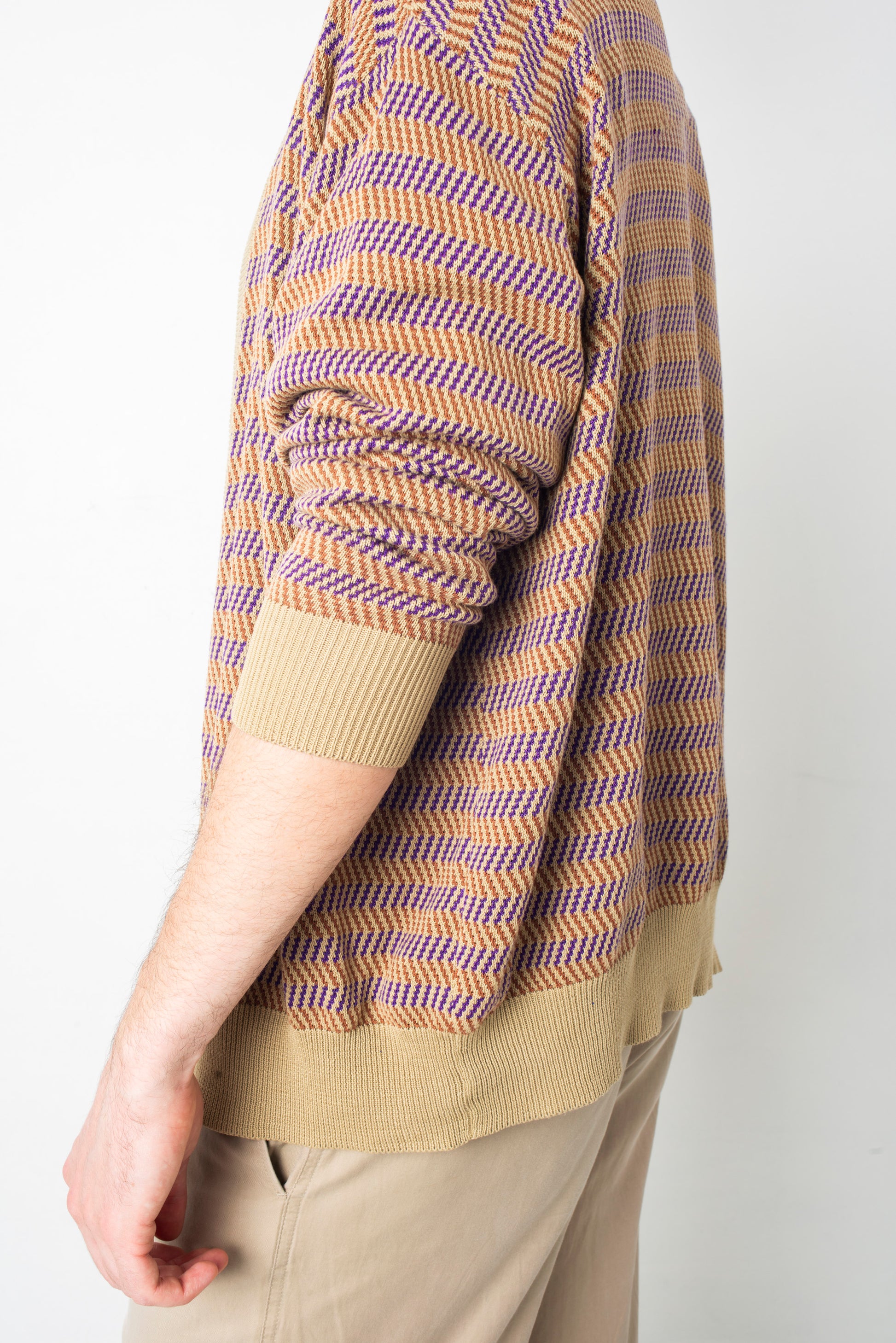 Giorgio Armani 90s zig zag knit beige & purple cotton cardigan
