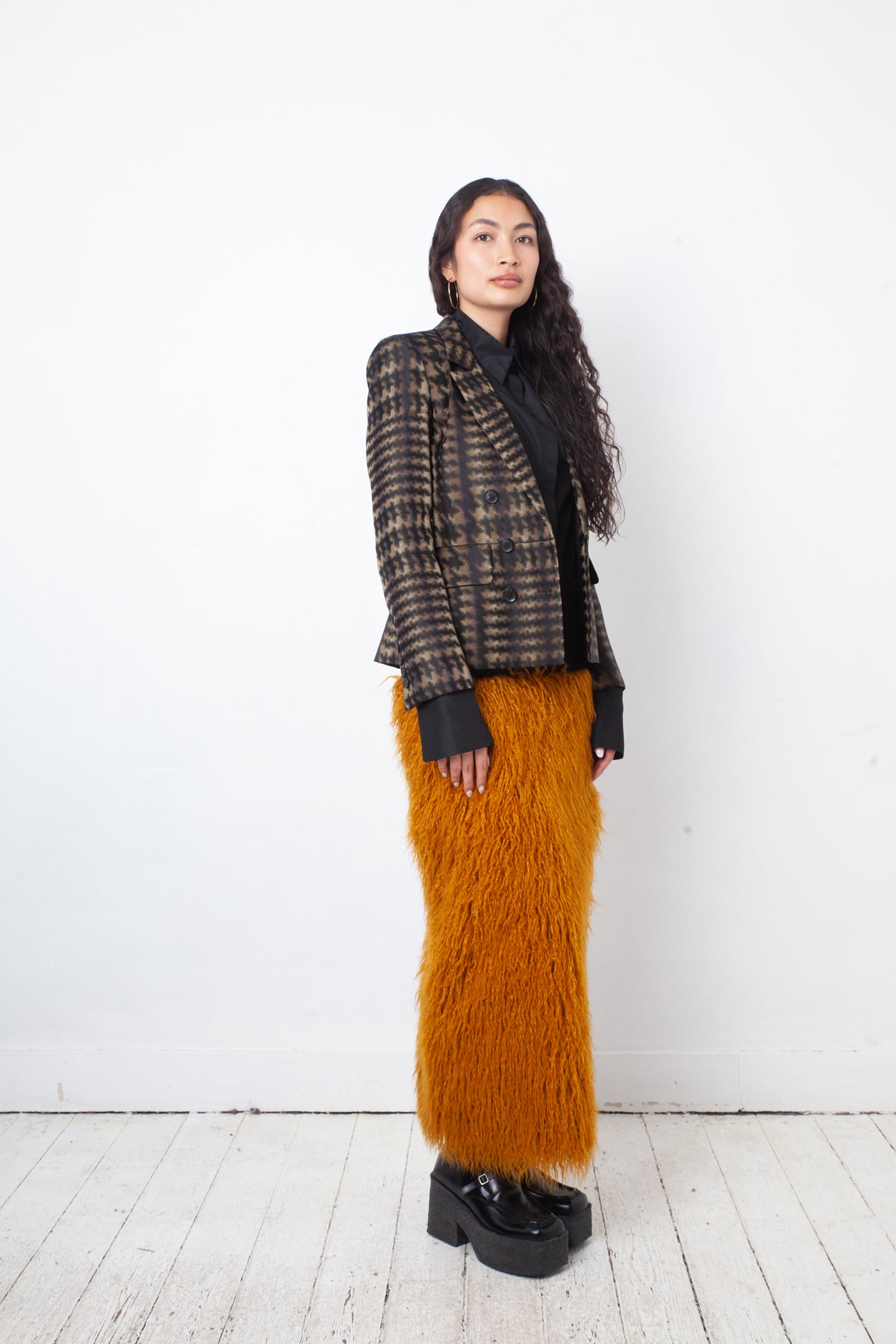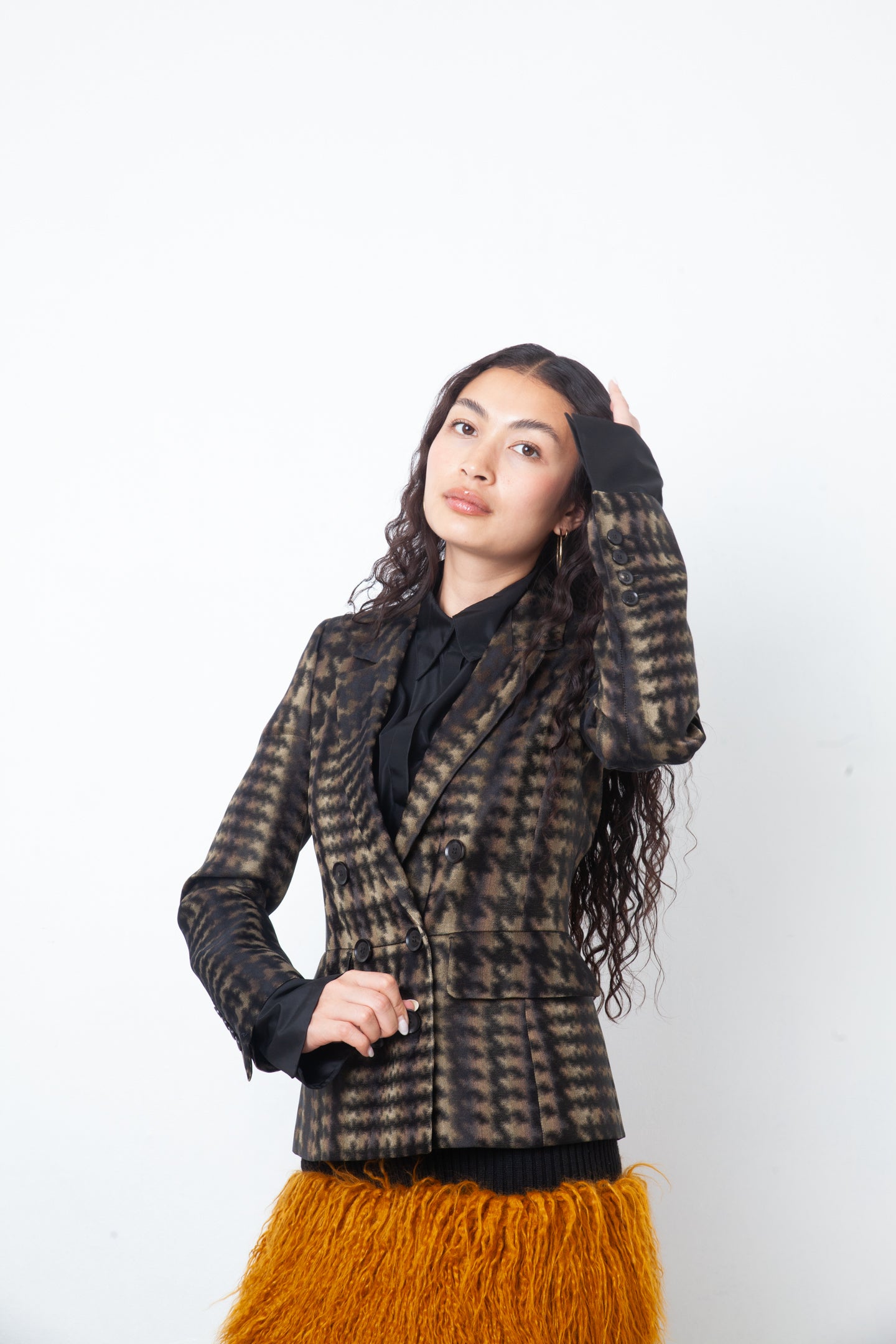Gucci Fall 2013 silk khaki blazer in a beautiful iridescent houndstooth pattern.