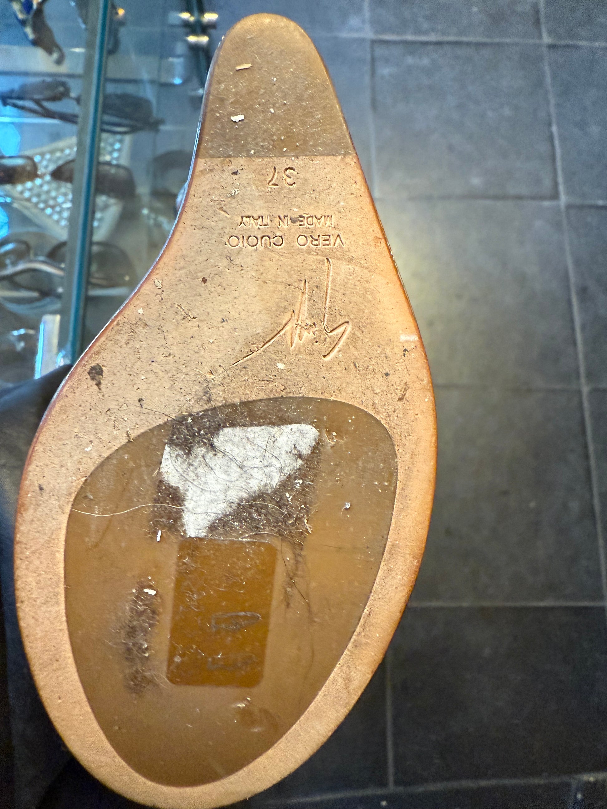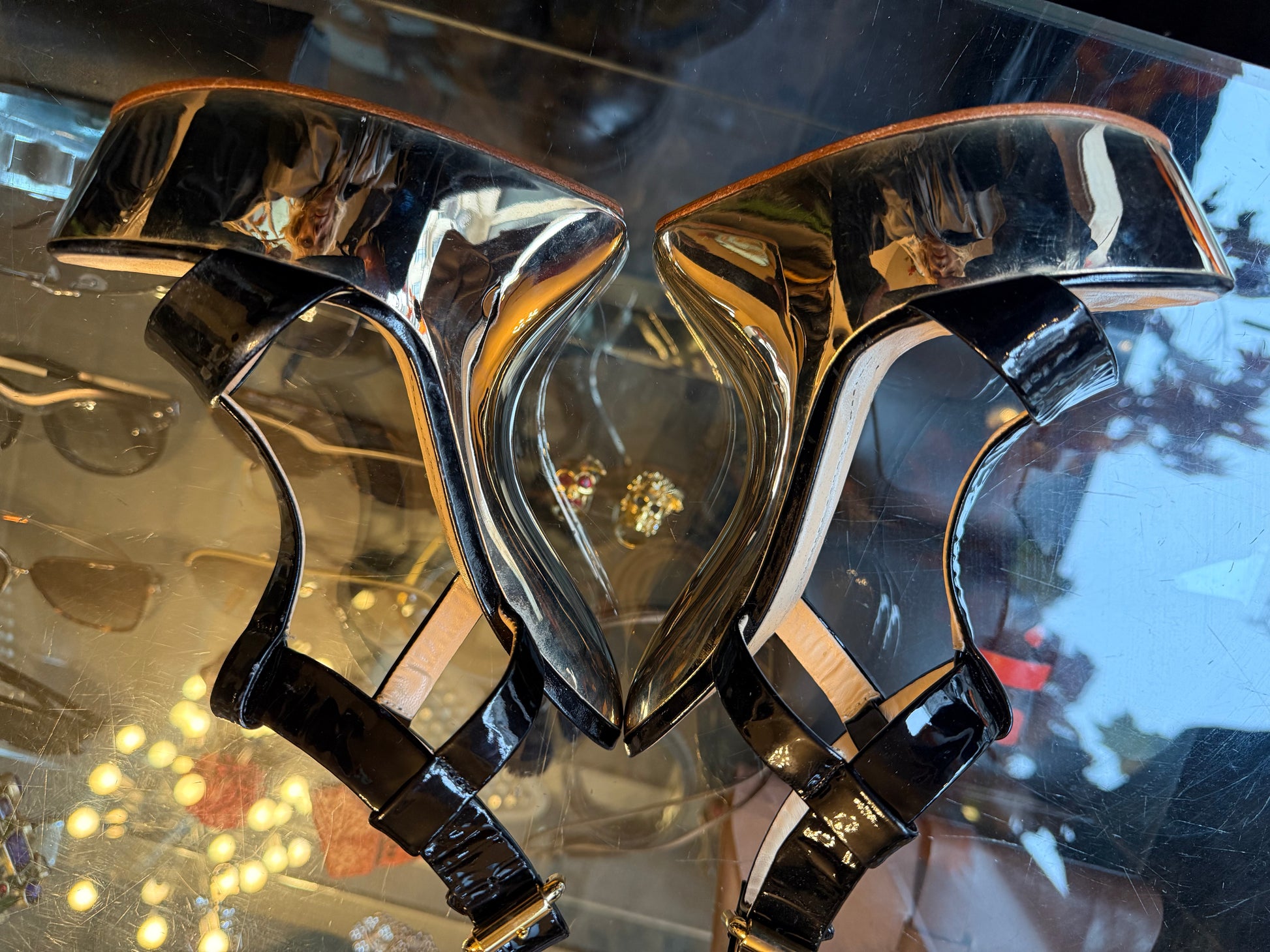 Guiseppe Zanotti floating mirror gold and leather heels size 37