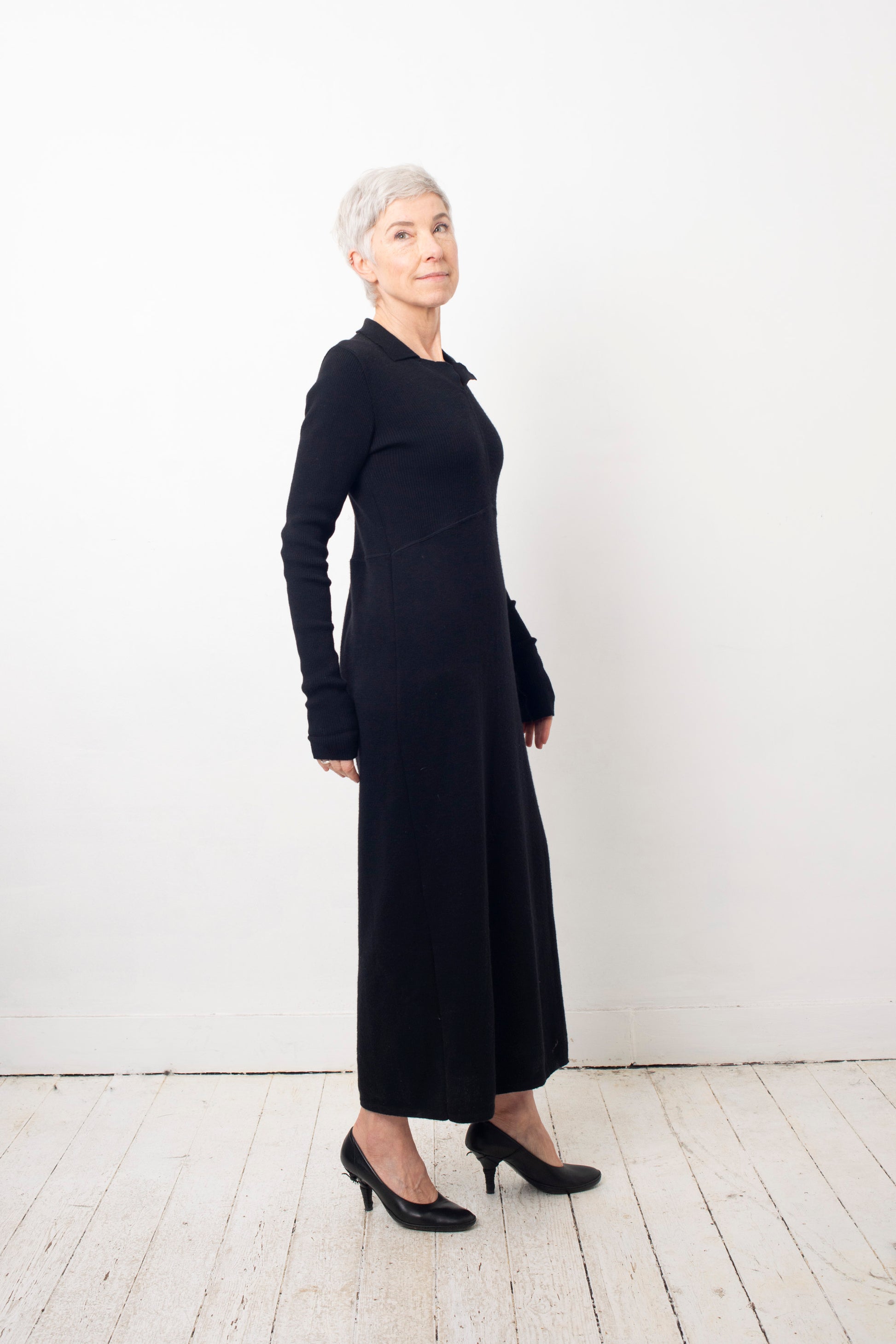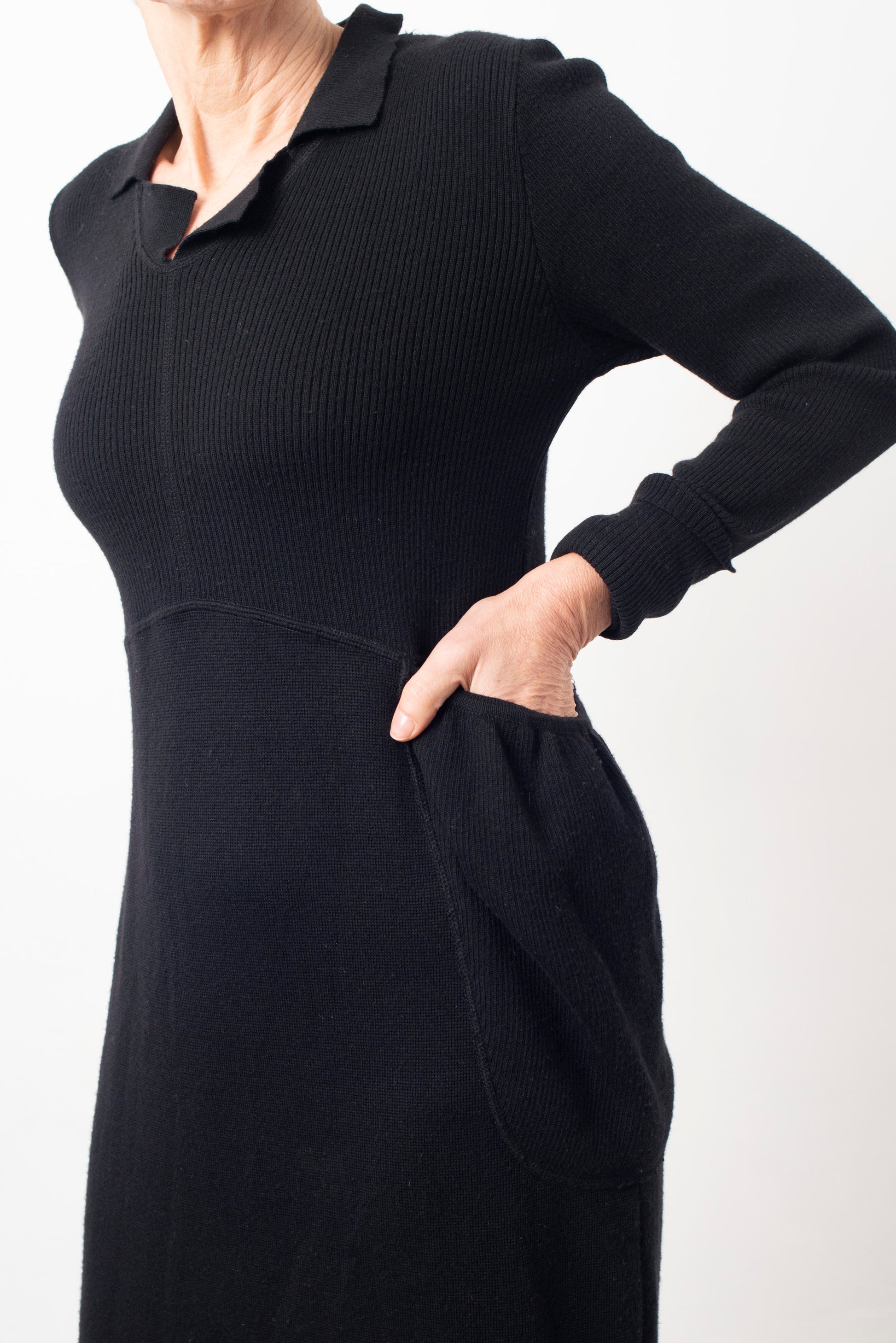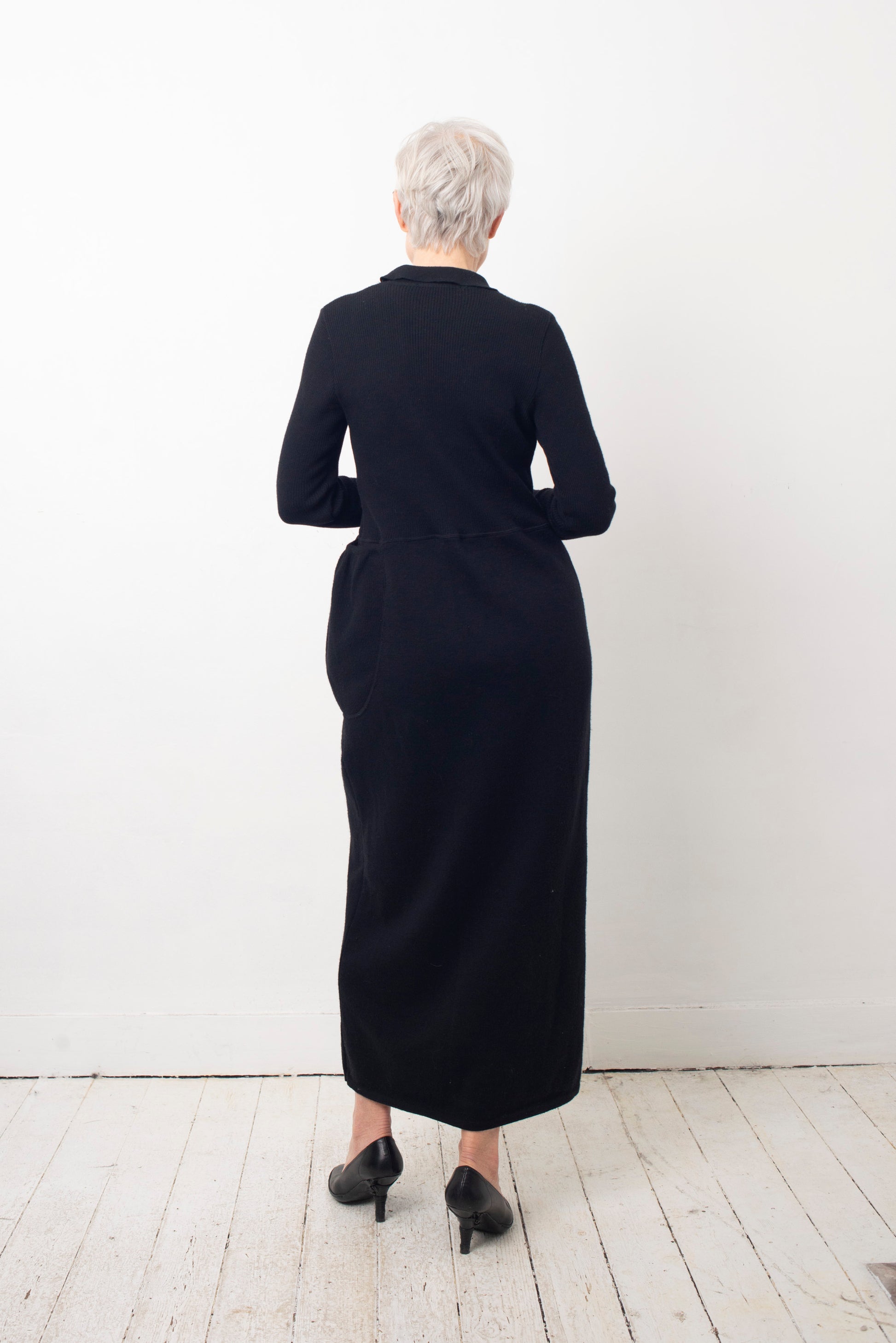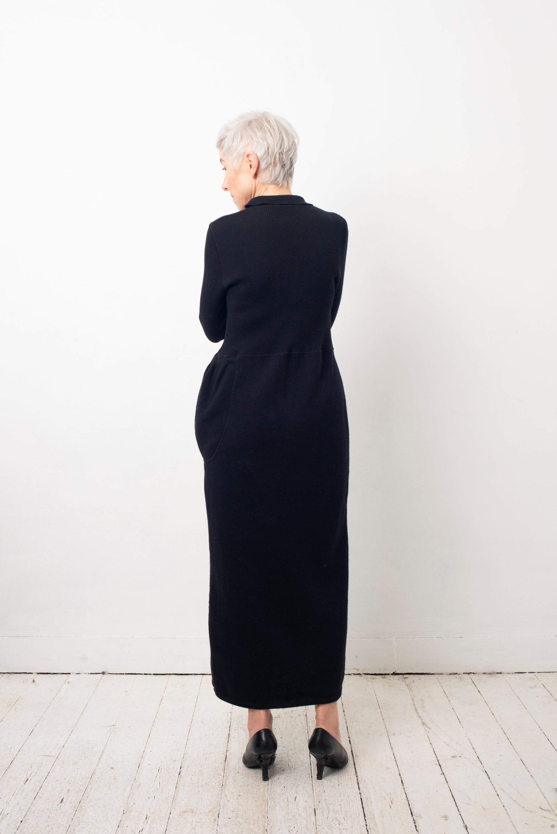 Helena van Haeren 2000's black ribbed wool maxi dress with large pocket detail