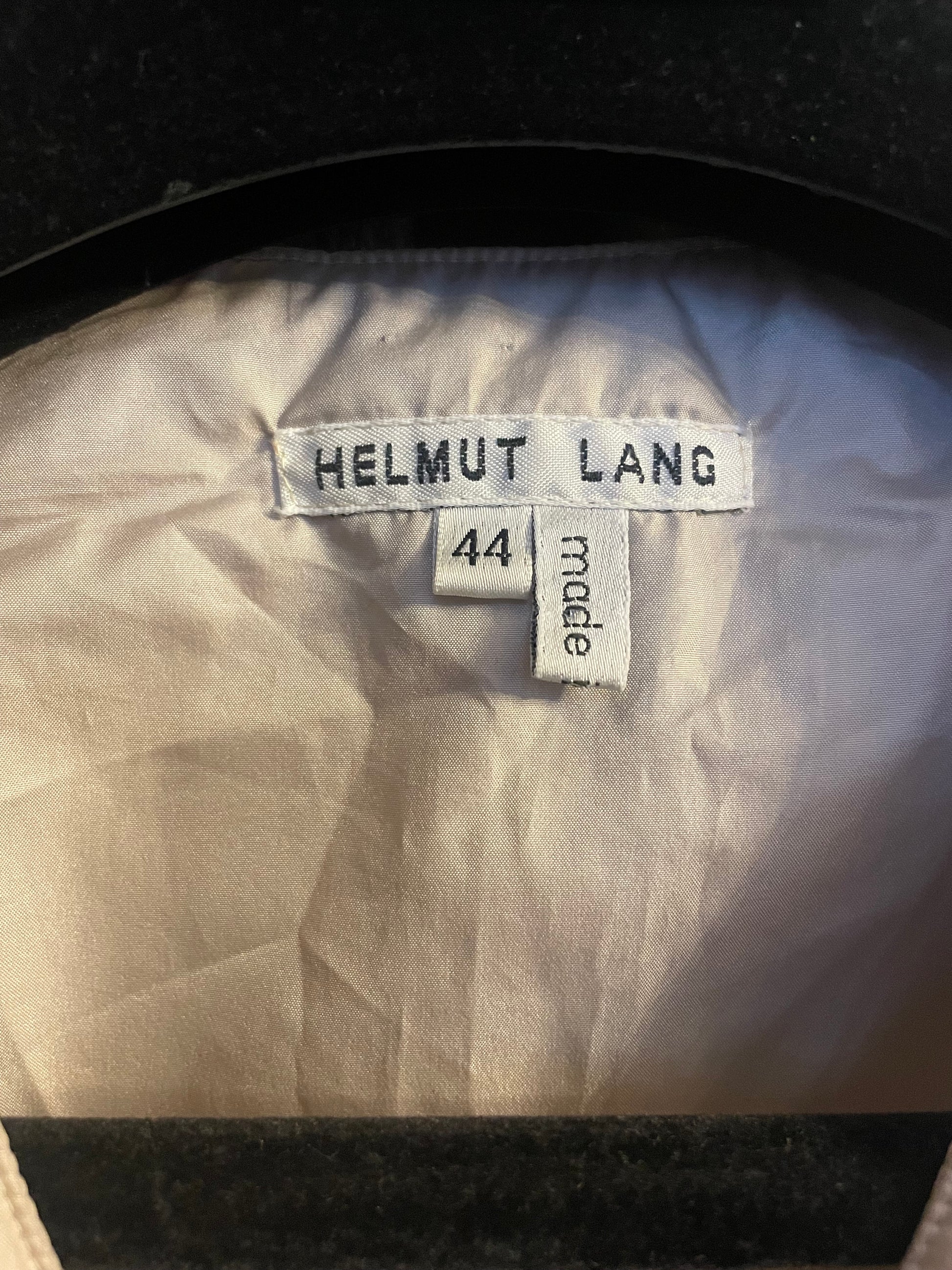 Wonderful Helmut Lang sleeveless vest from the early 90's in a quilted silver nylon fabric with a front zipper closure and a half open back with belt detail.