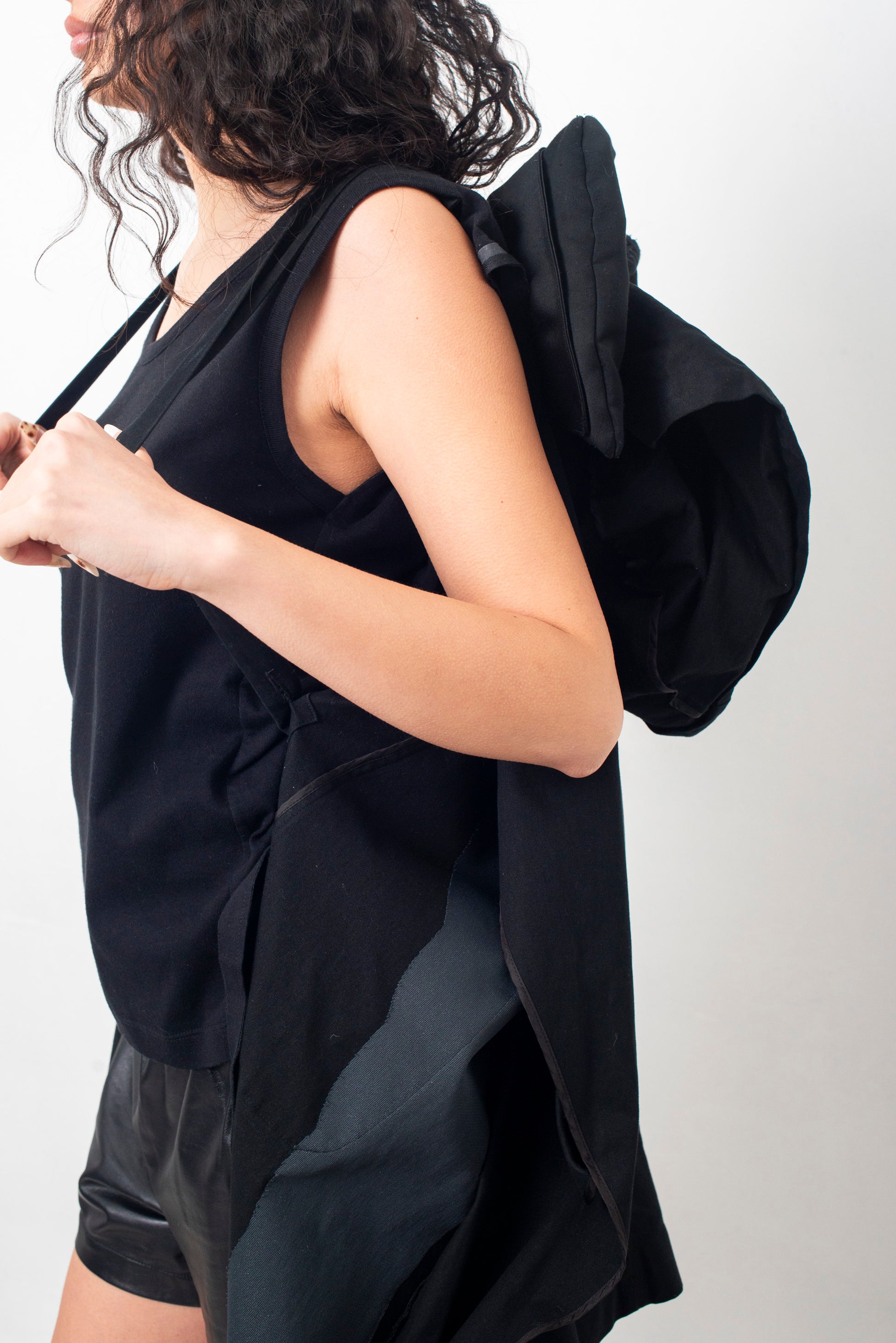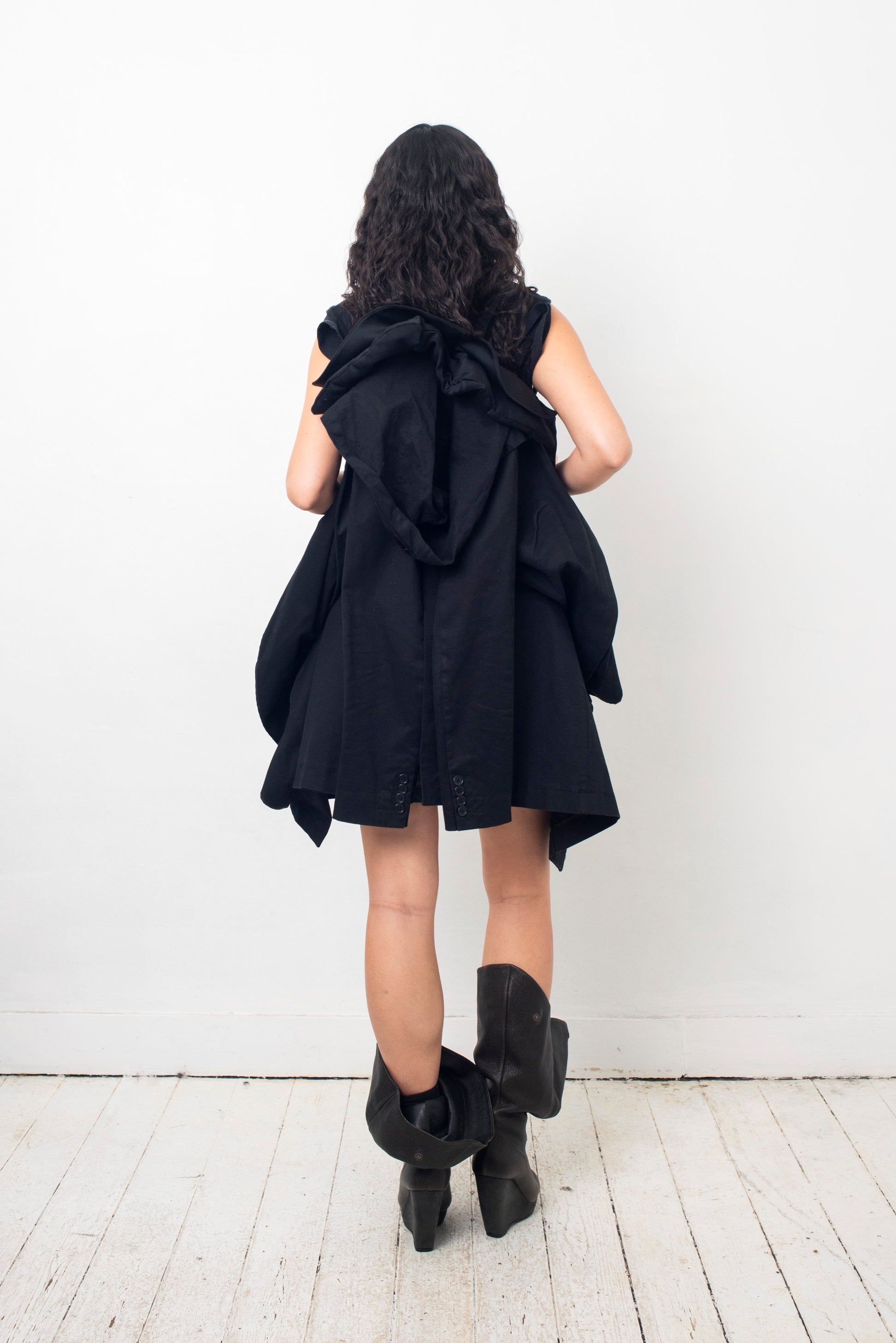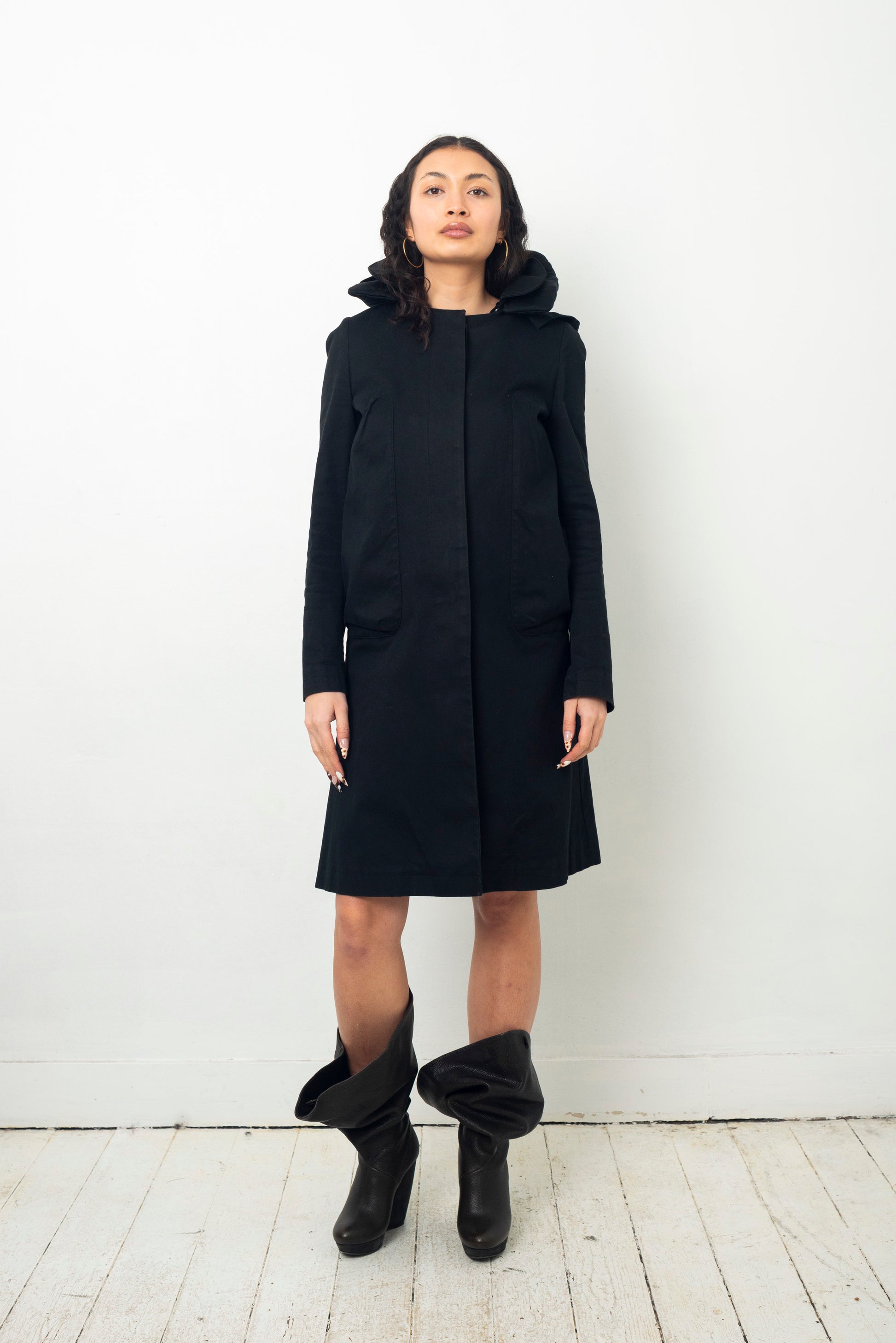 Helmut Lang SS 2000 black cotton parachute coat with removable collar