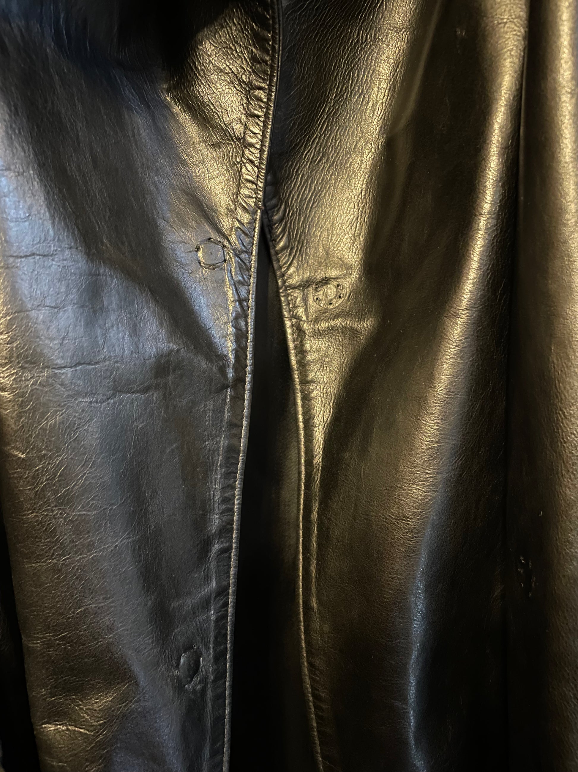 The jacket used to have a snap button closure, but these were removed by the previous owner, one can still slightly notice their imprint. (See pictures) One can still choose to have the snap buttons put back by a tailor.