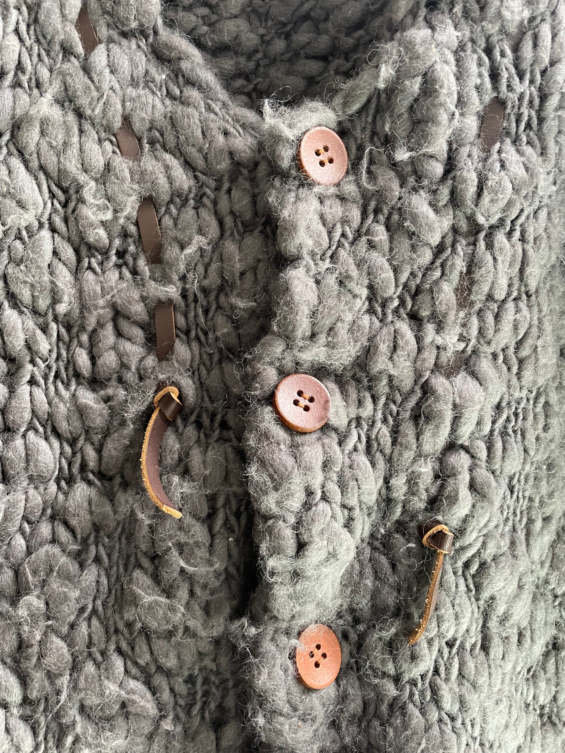 Issey Miyake FW 1994 Men’s chunky knit grey sweater with leather string detail