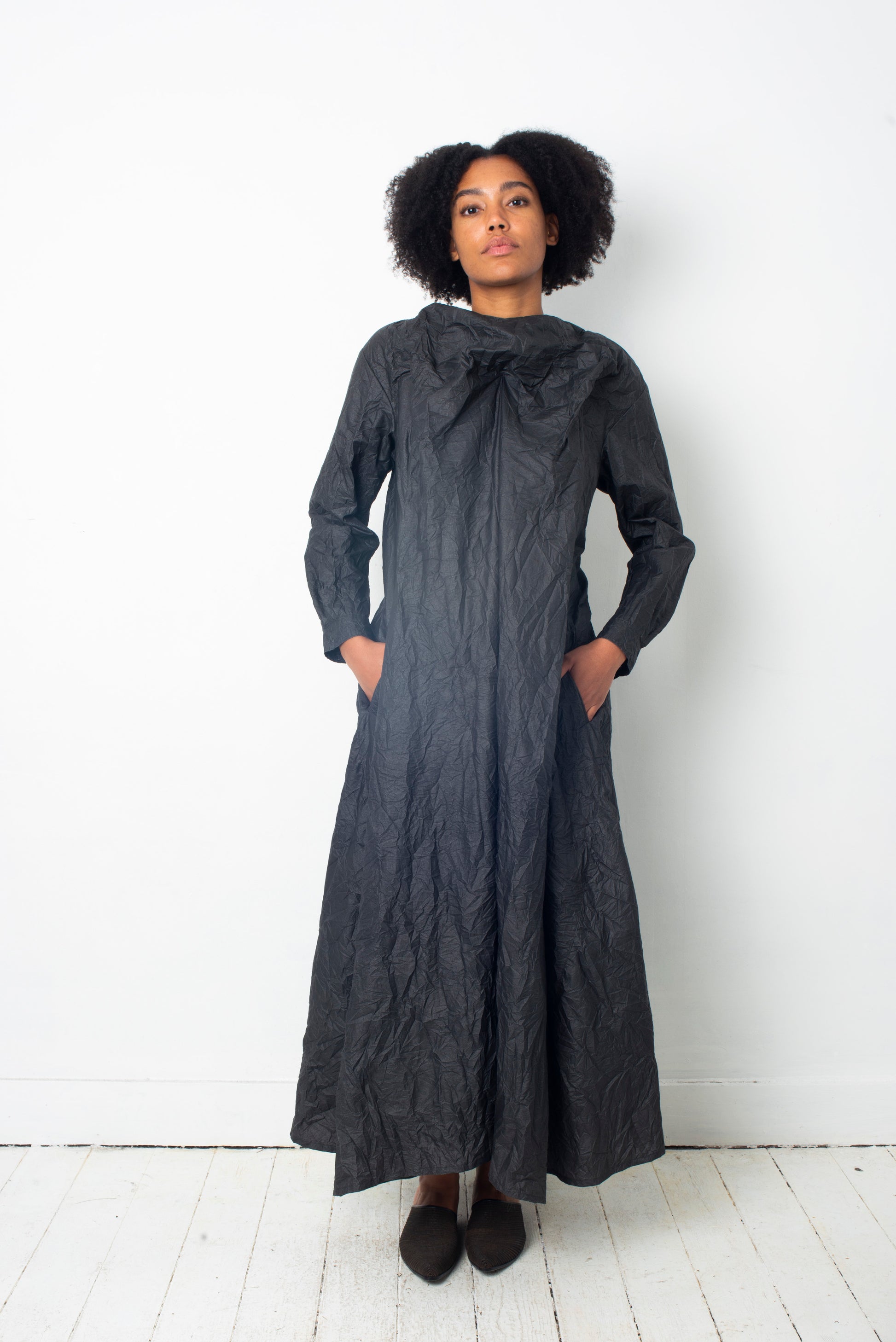 Issey Miyake 90's grey maxi wrinkled paper dress