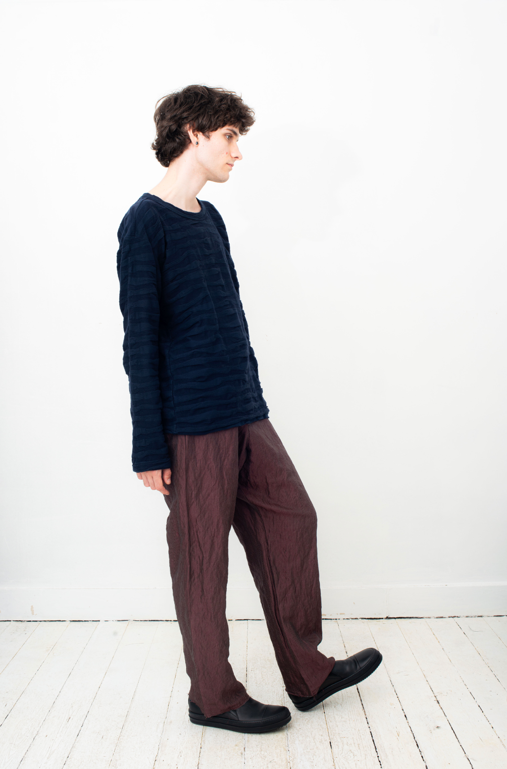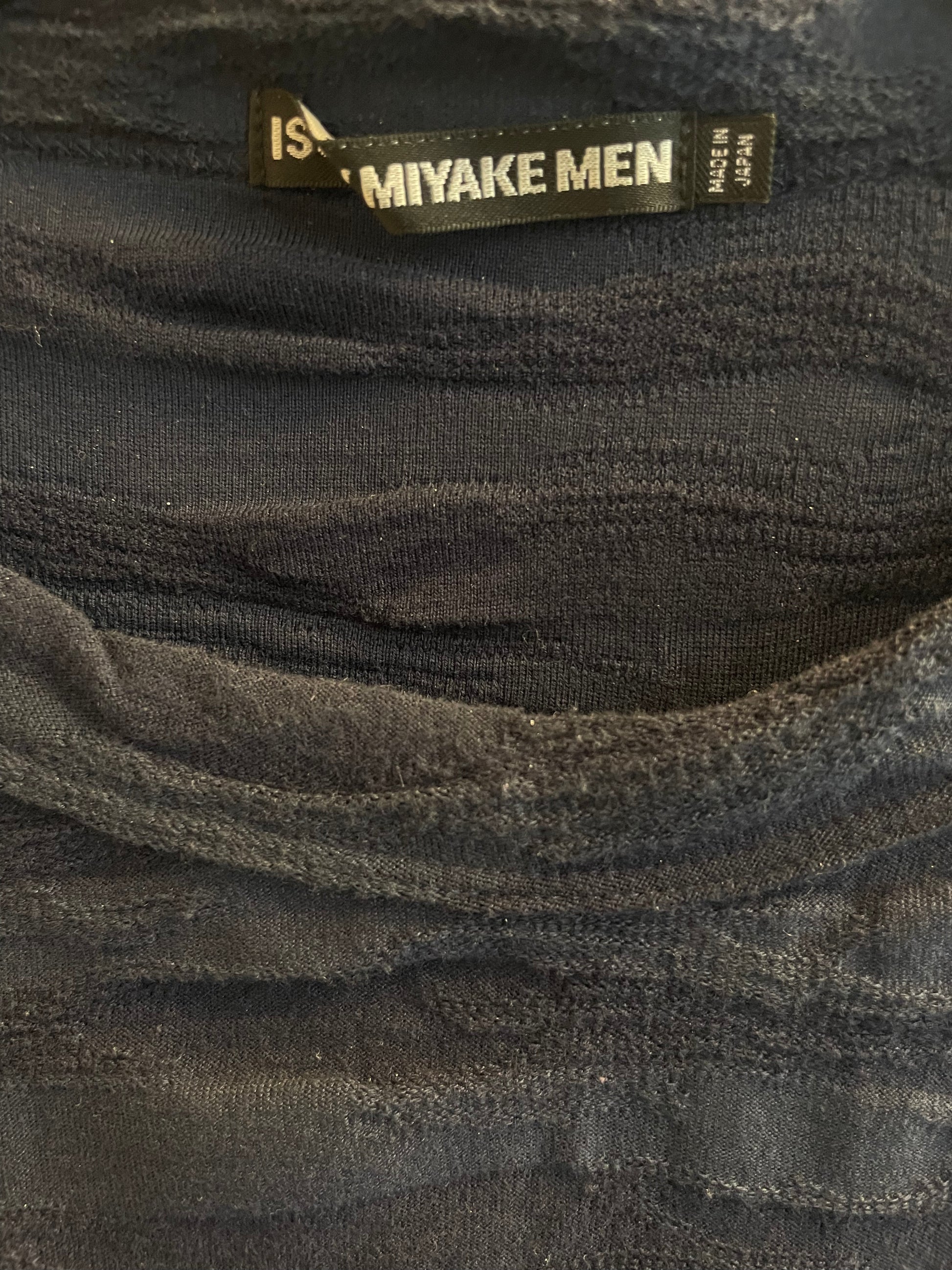 A beautiful textured light cotton dark blue sweater from Issey Miyake's menswear line.