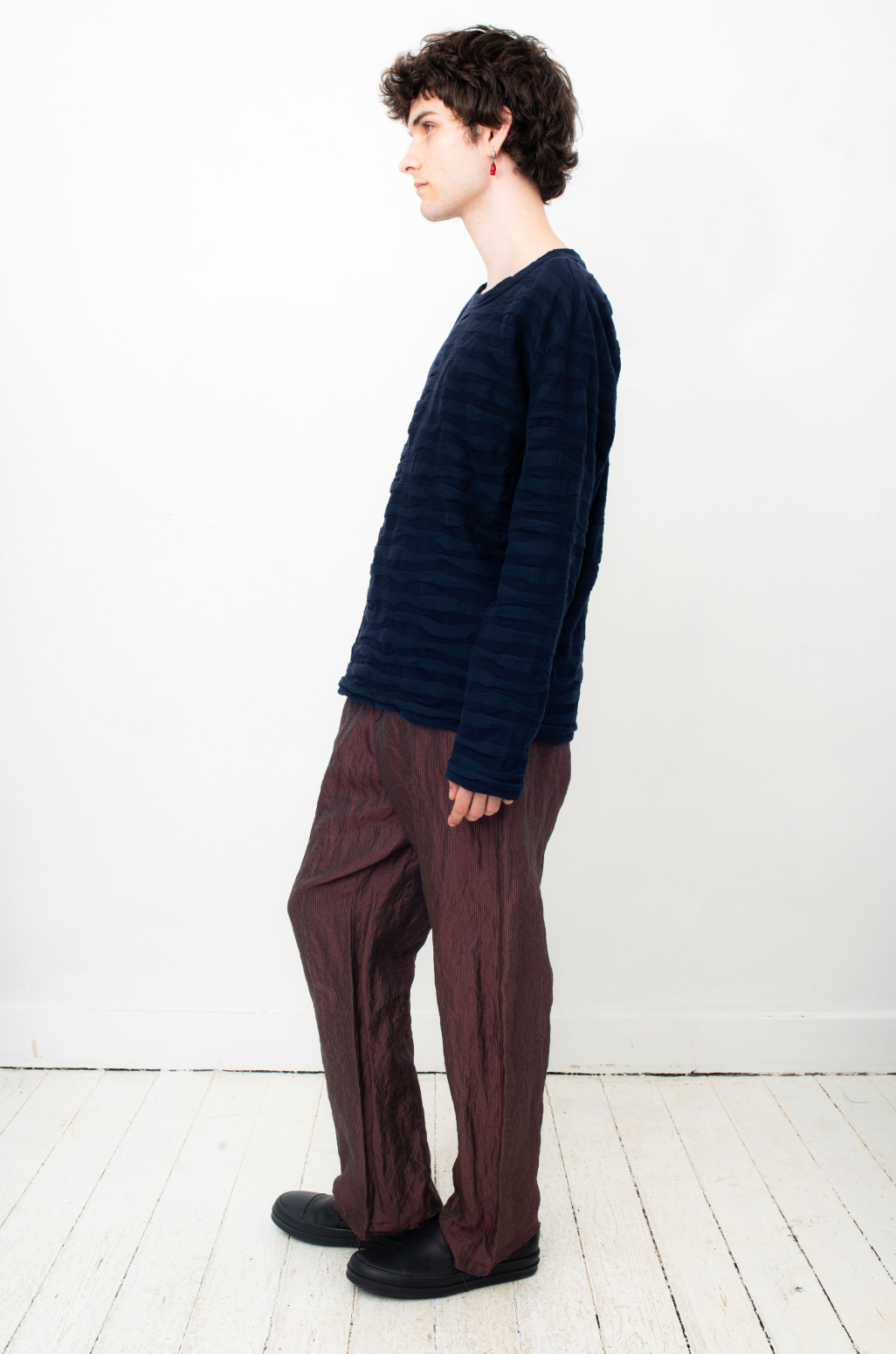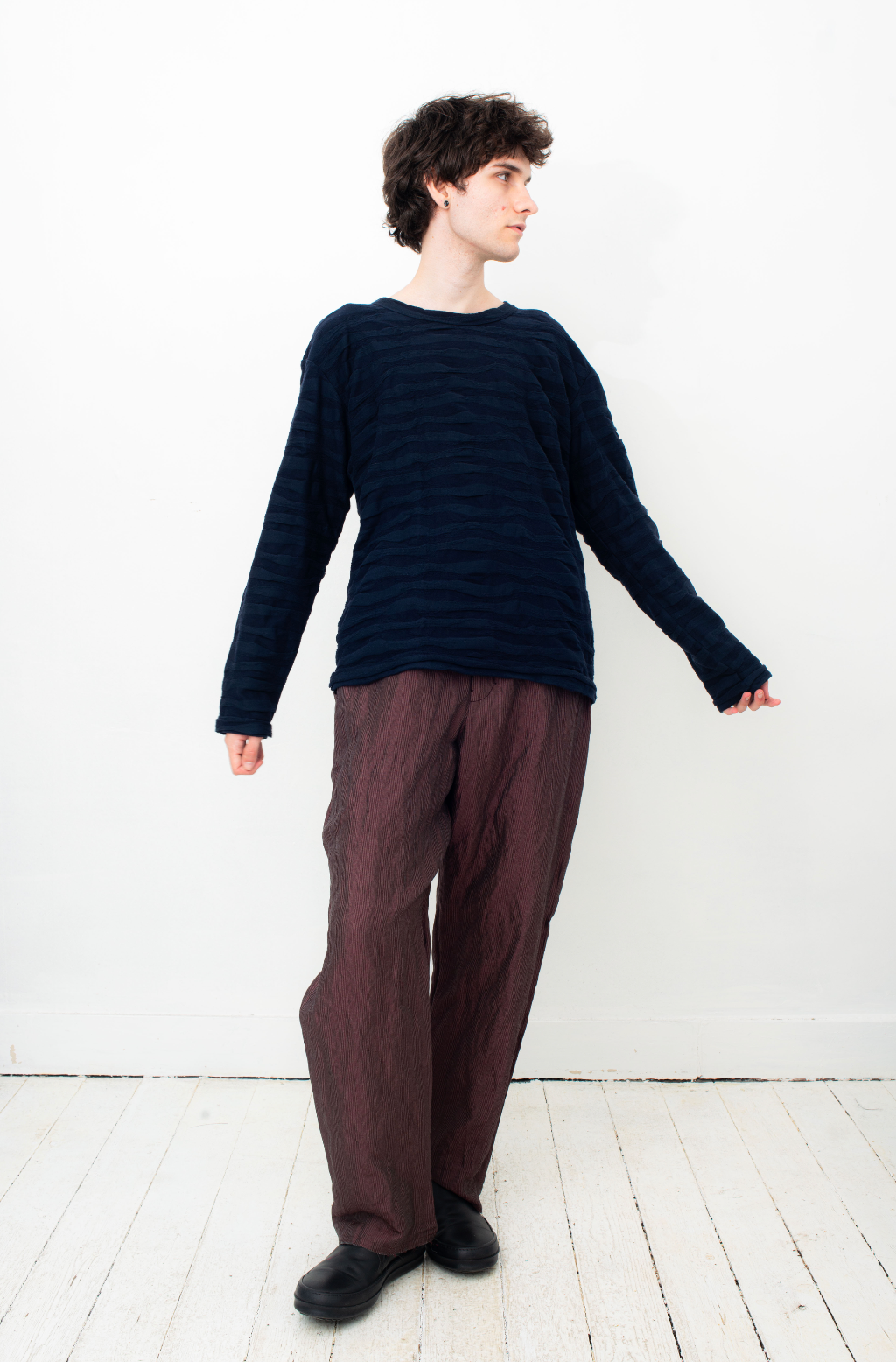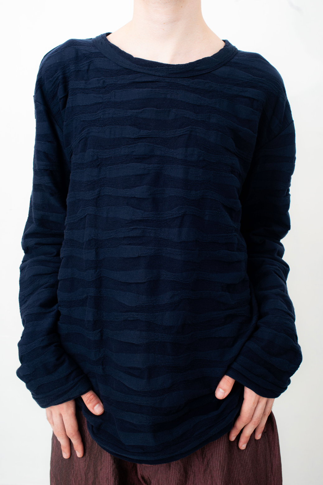 Issey Miyake Men 2010's dark blue cotton knit wavy sweater
