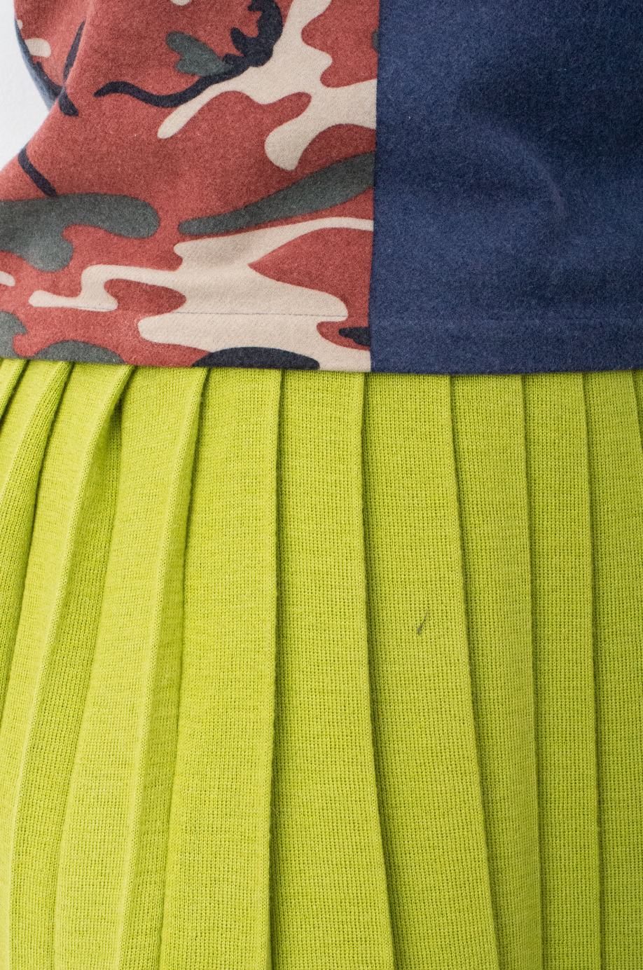 Jean Paul Gaultier 90's wool knit lime green pleated skirt