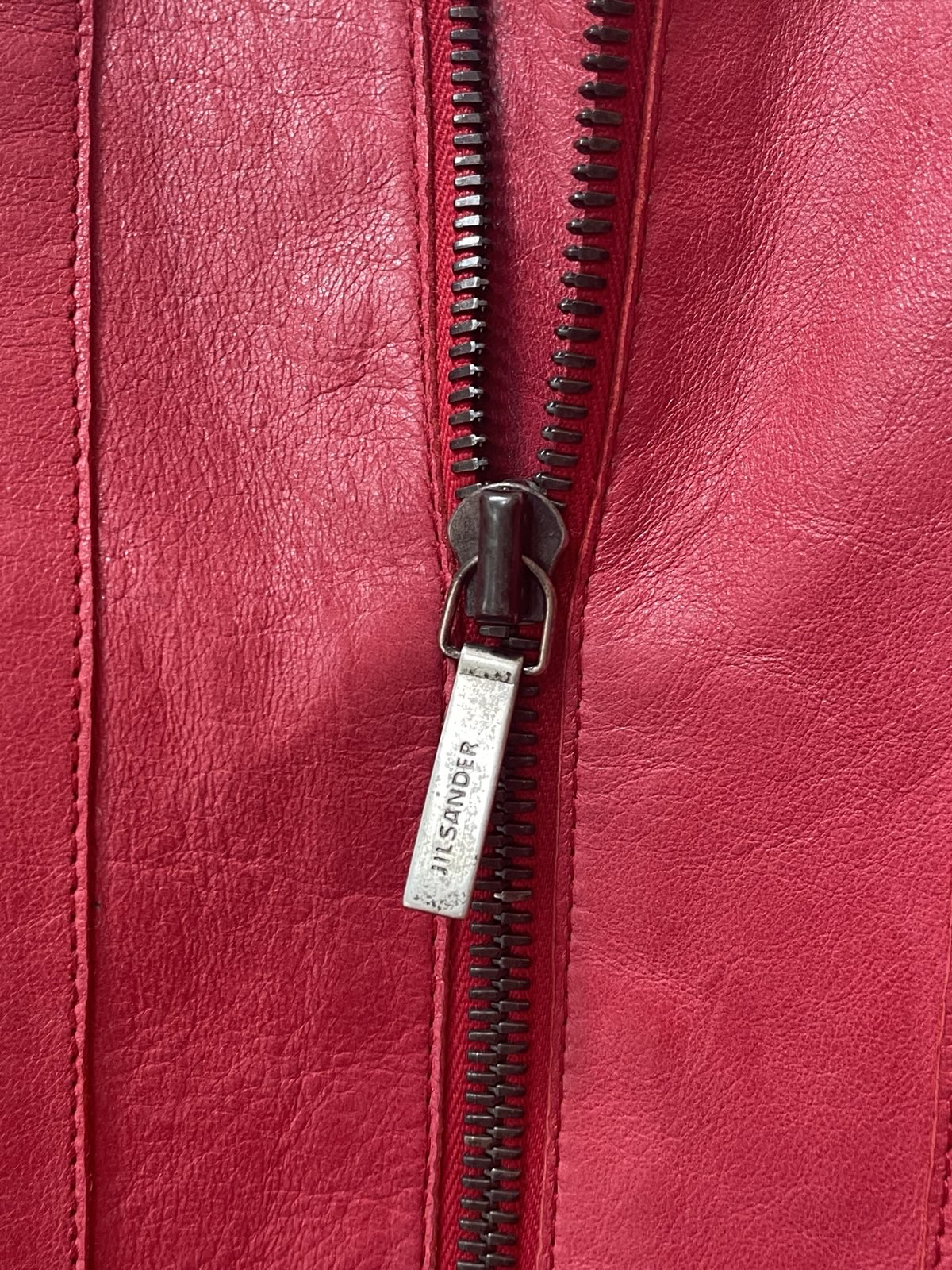 This early 2000’s jacket is a perfect example of efficient simplicity, few seams are visible, which gives a fine and elegant appearance to the silhouette. However the choice of a bright and sexy red, adds some freshness to the piece in contrast with the simple and strict cut.