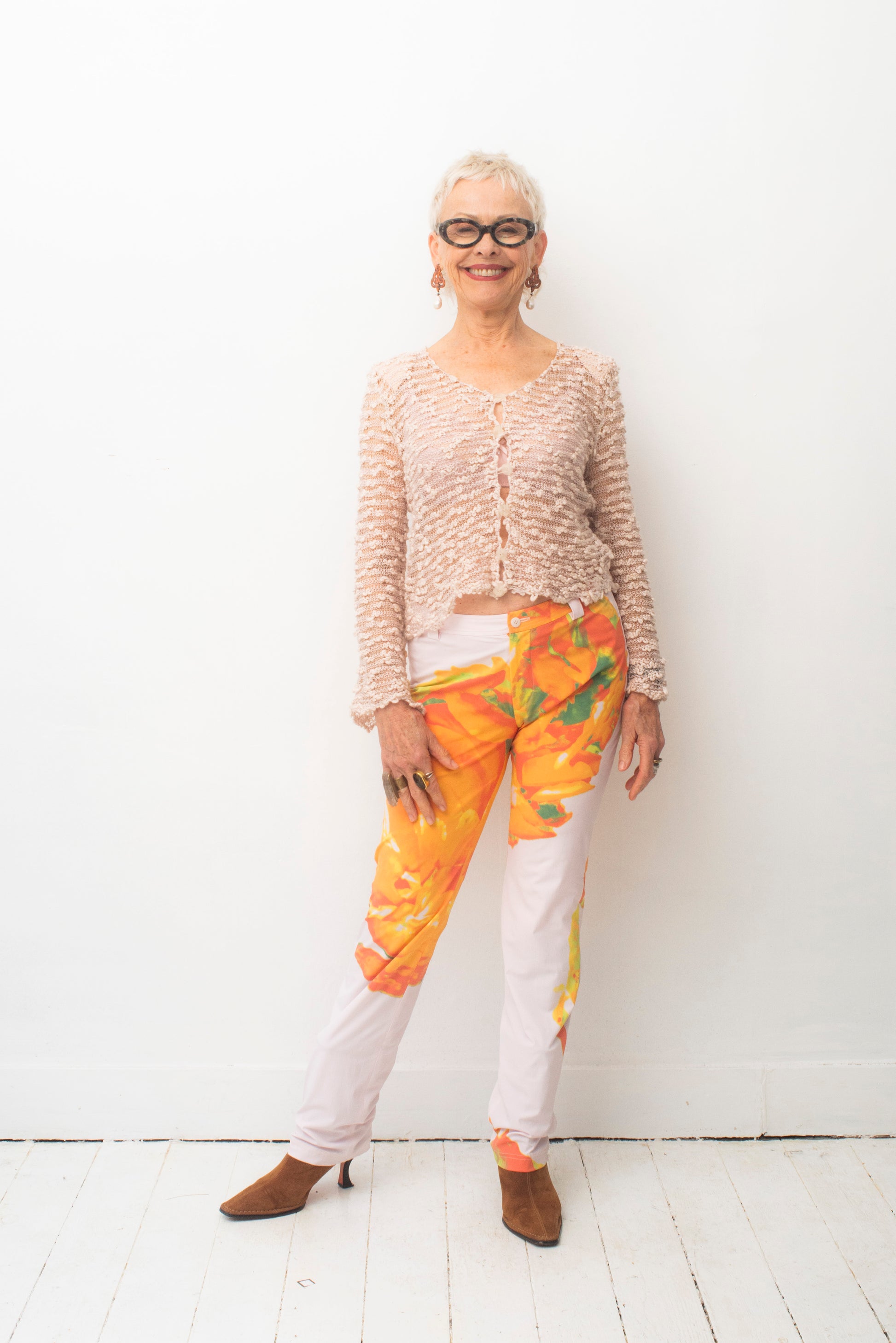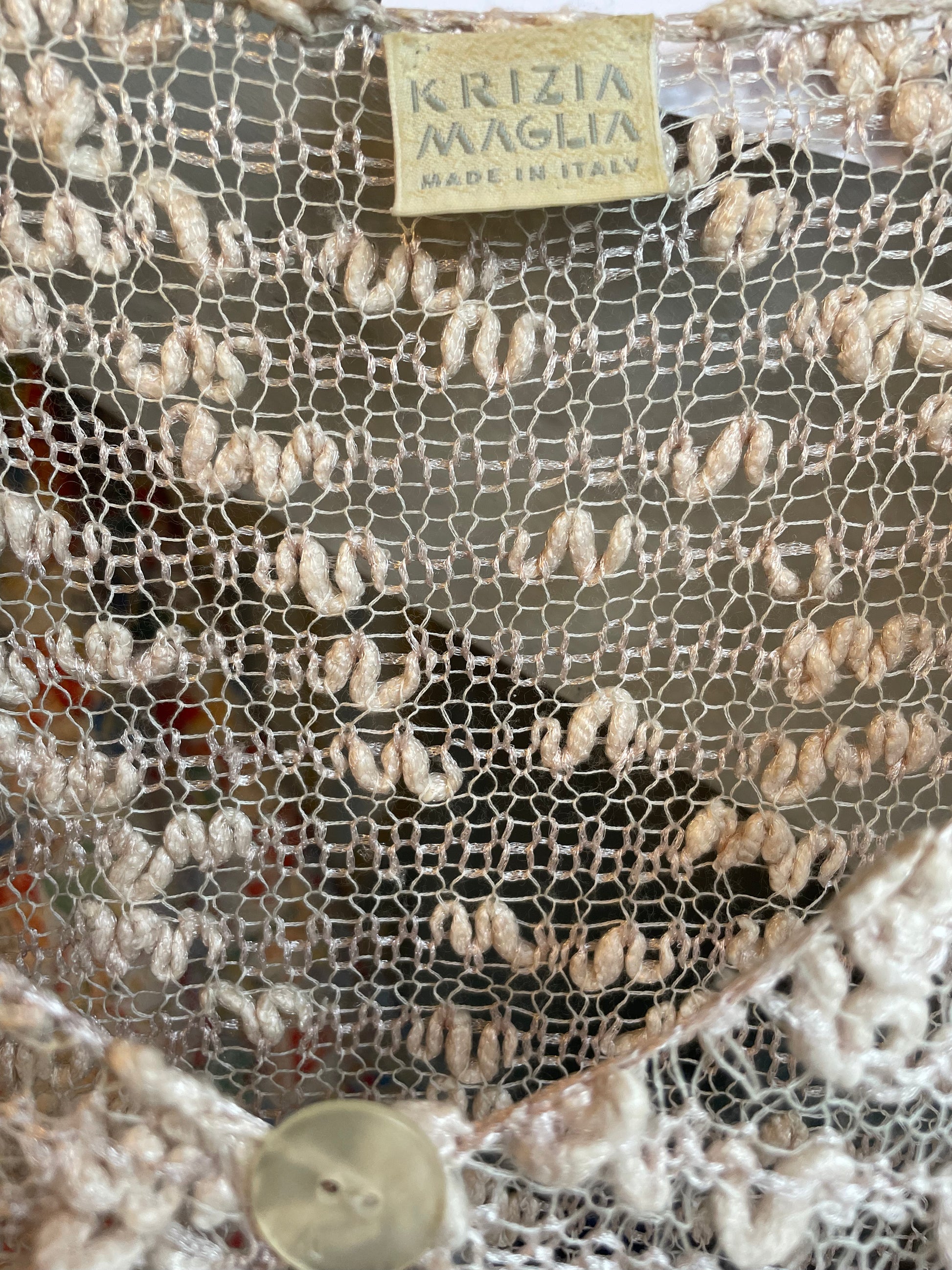 A very delicately knit cardigan by Kriza from the 80's made from a mix of cotton, viscose, wool and metallic yarn.