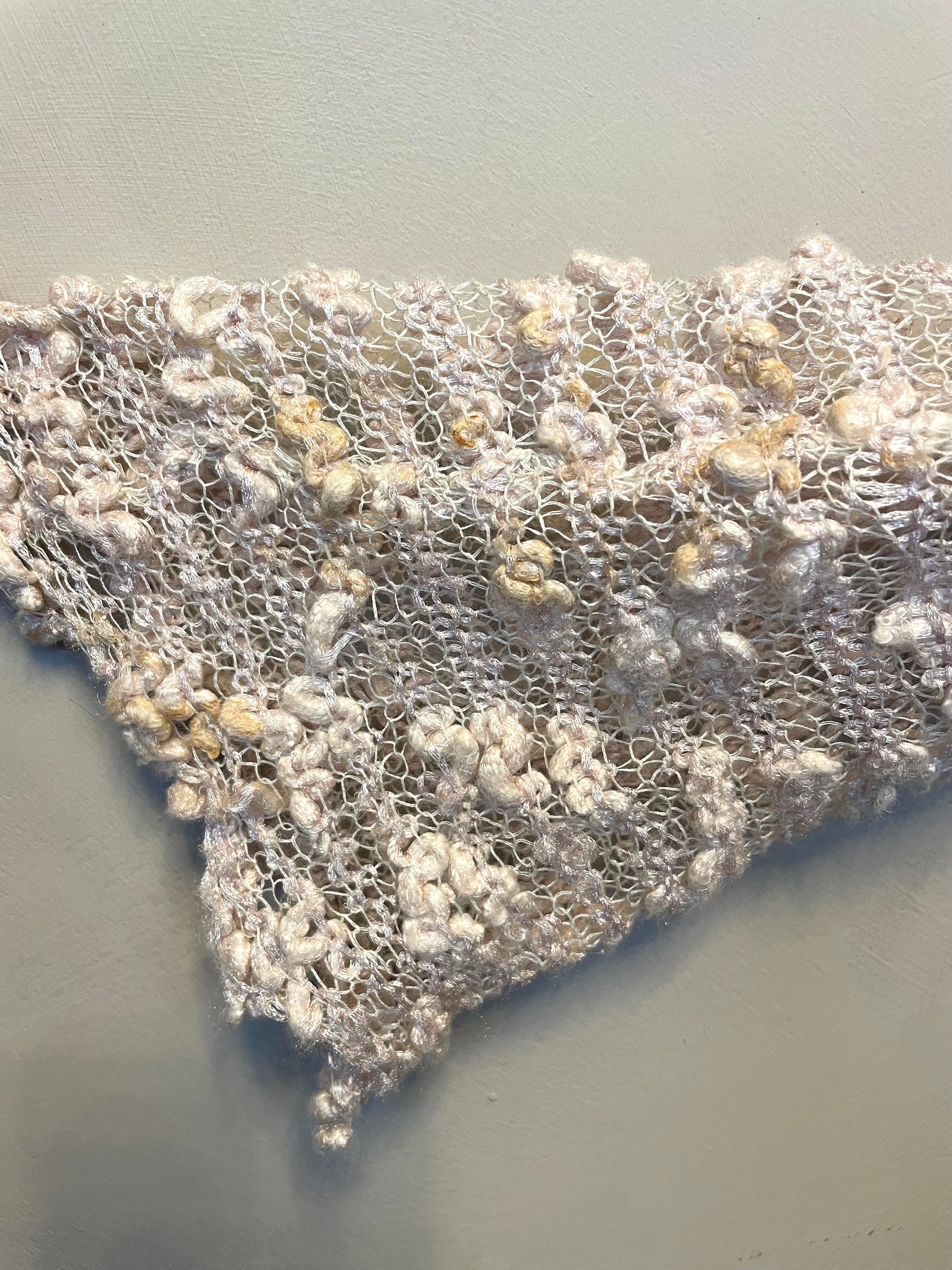 The loosely knit structure creates a see-through effect and swirly pattern.