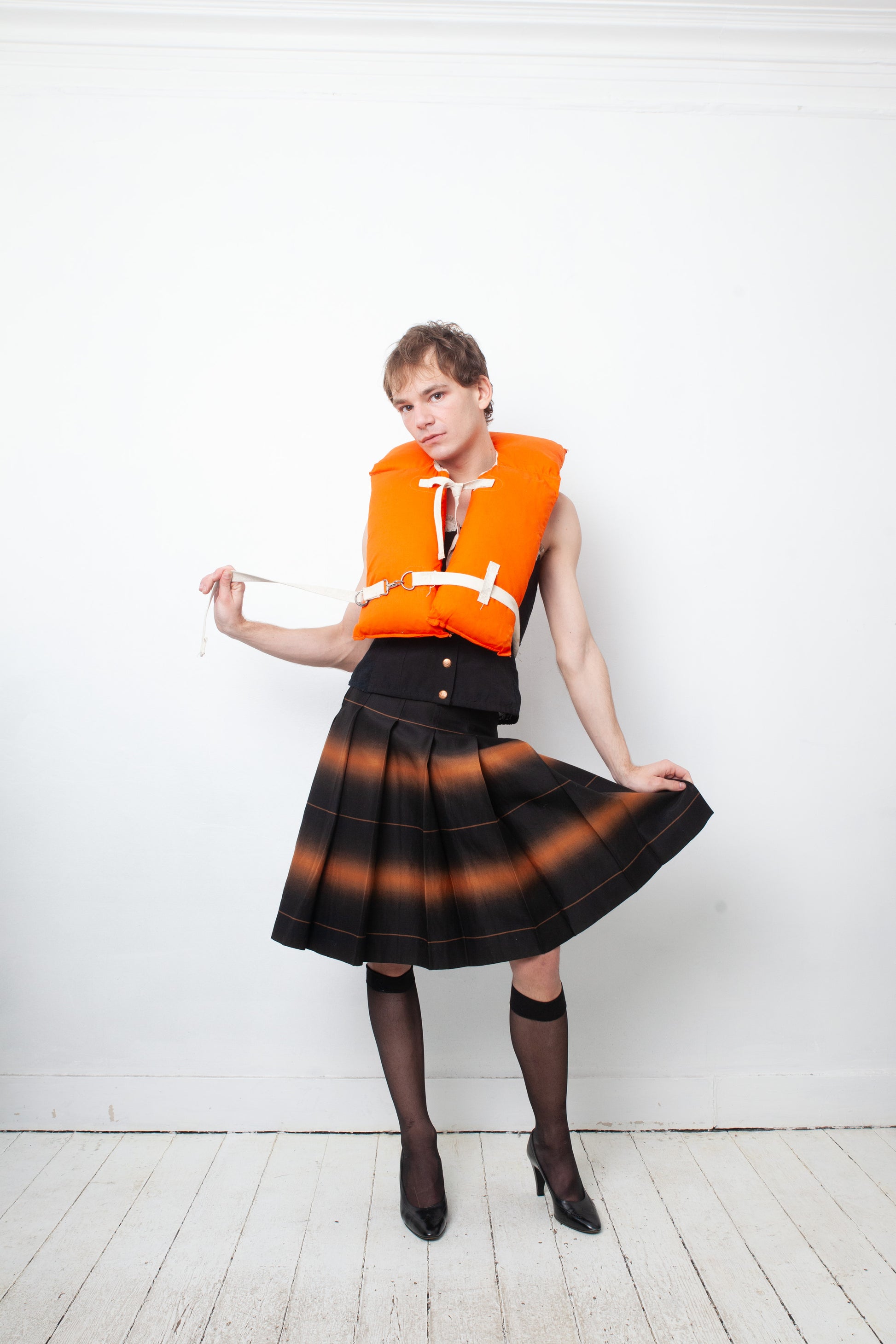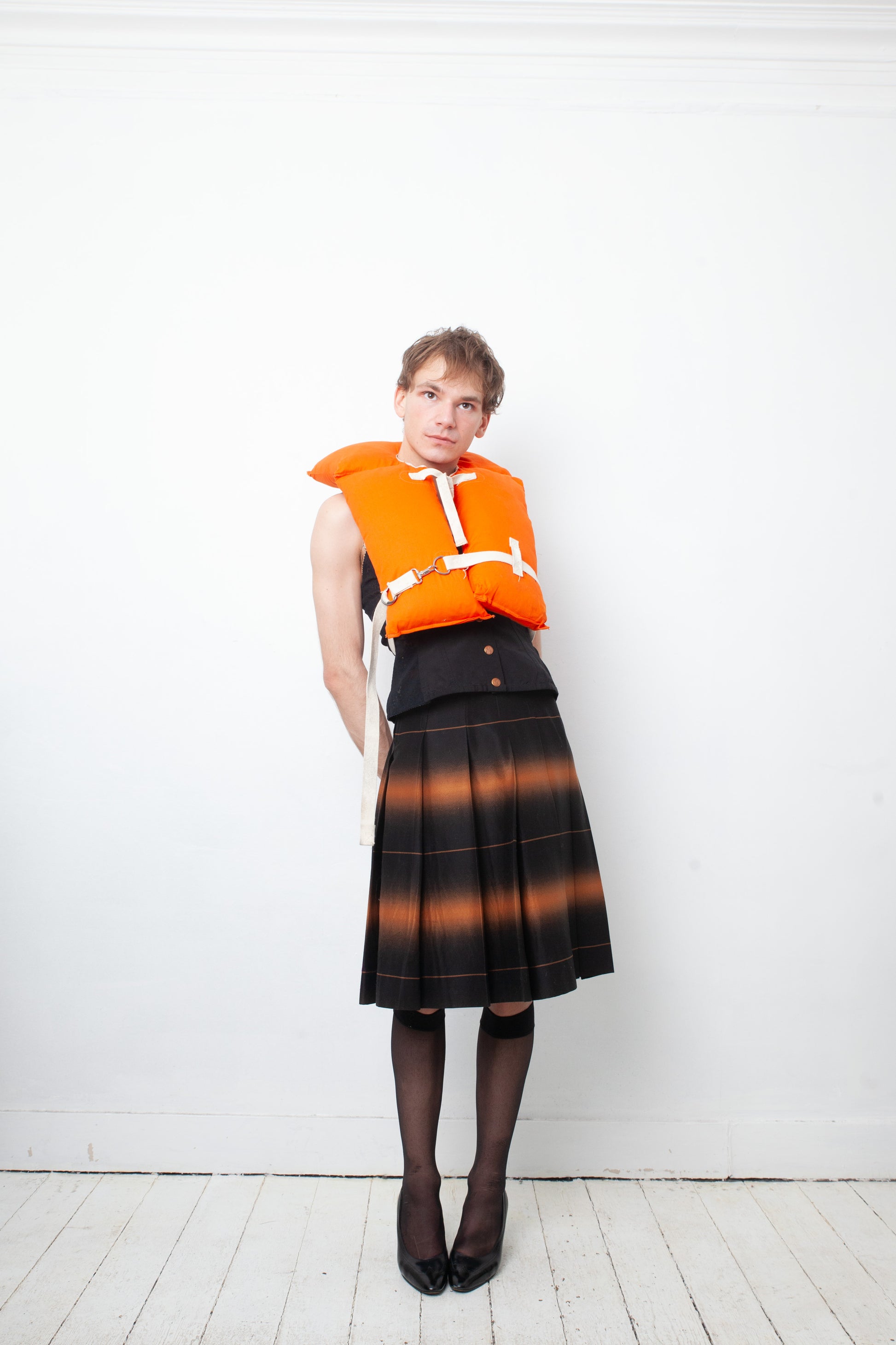 Here worn with a Jean Paul Gaultier 90's lace top and 1970's orange life jacket, also available online.