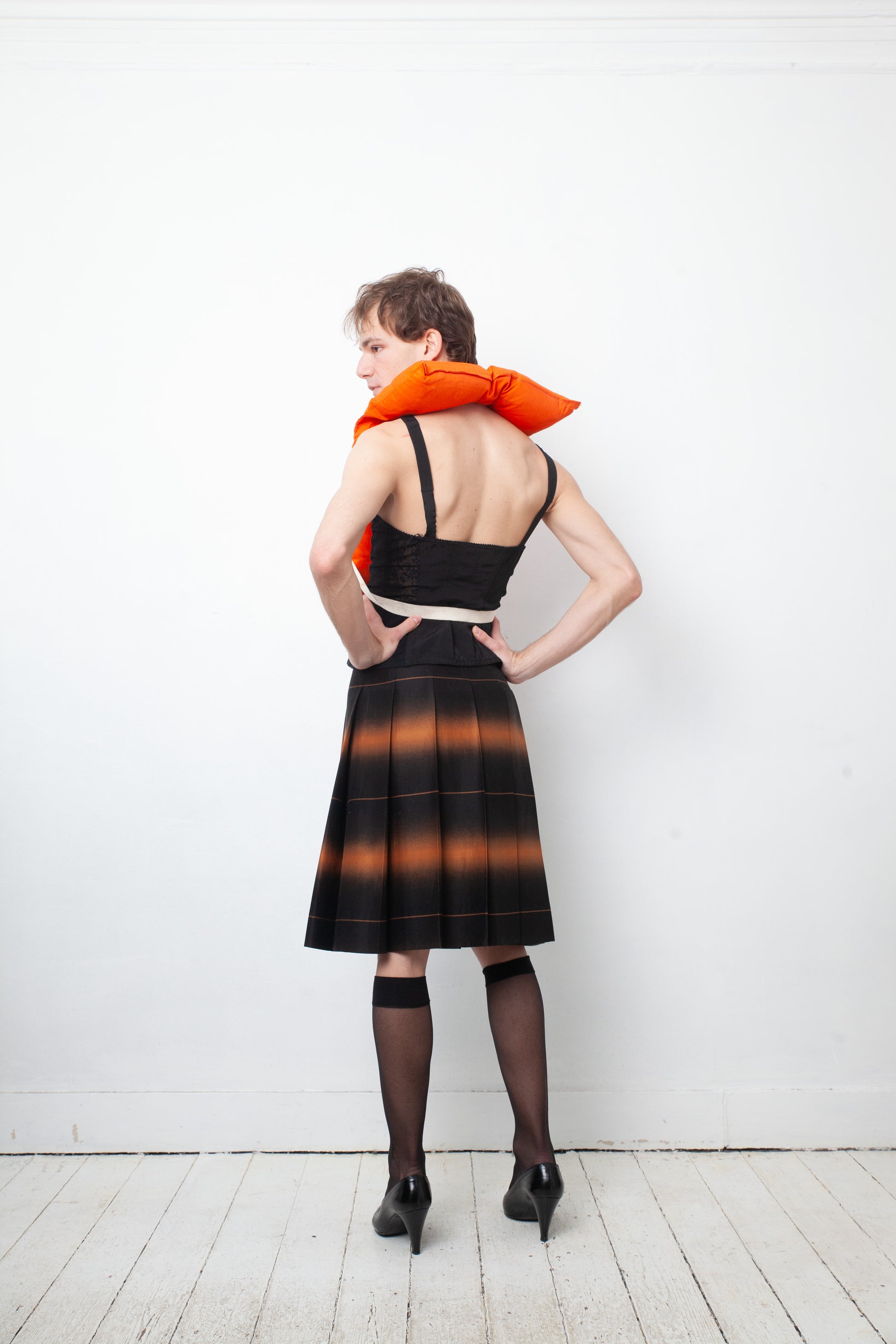 Marc by Marc Jacobs 2010's pleated cotton & silk skirt in black and orange stripes