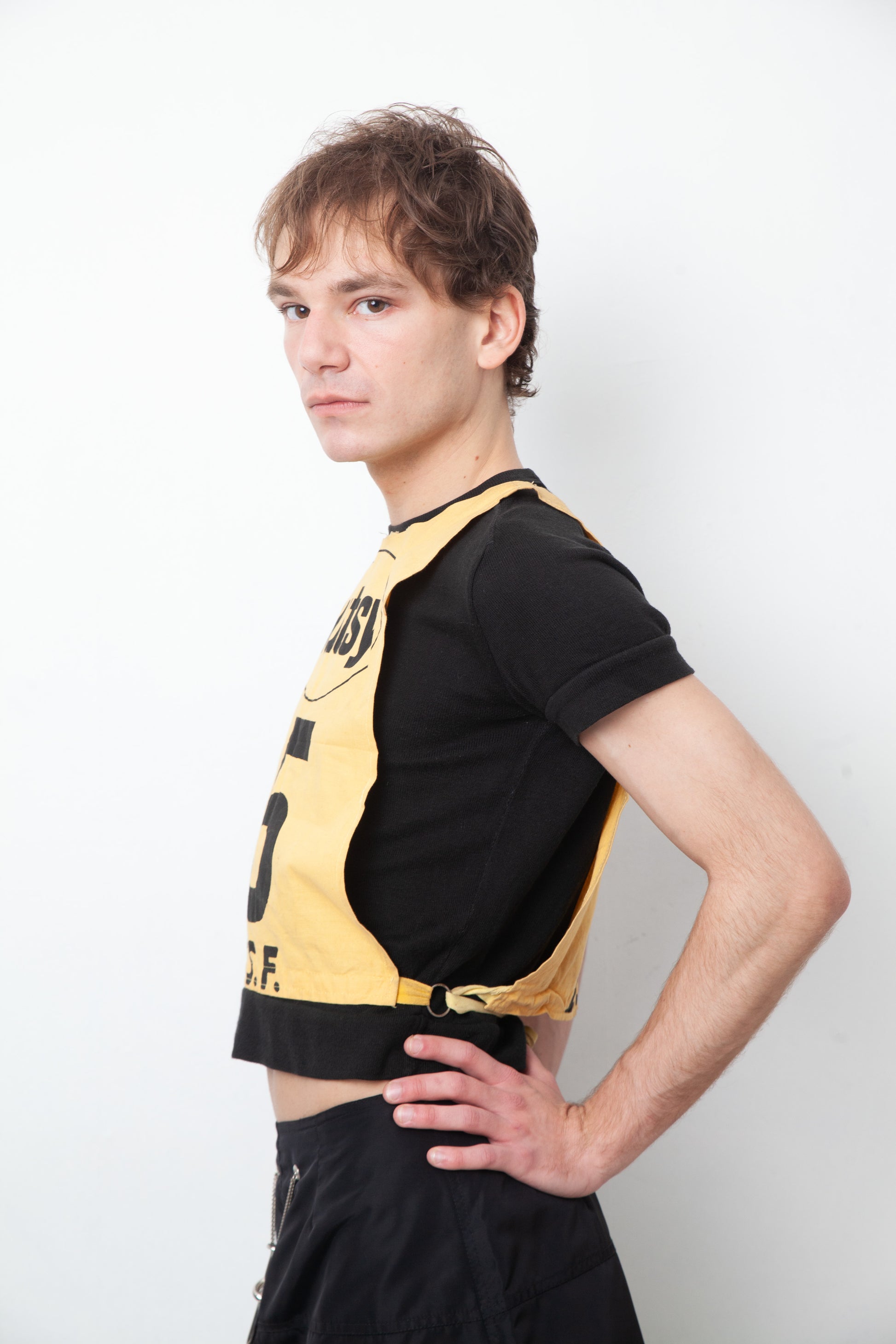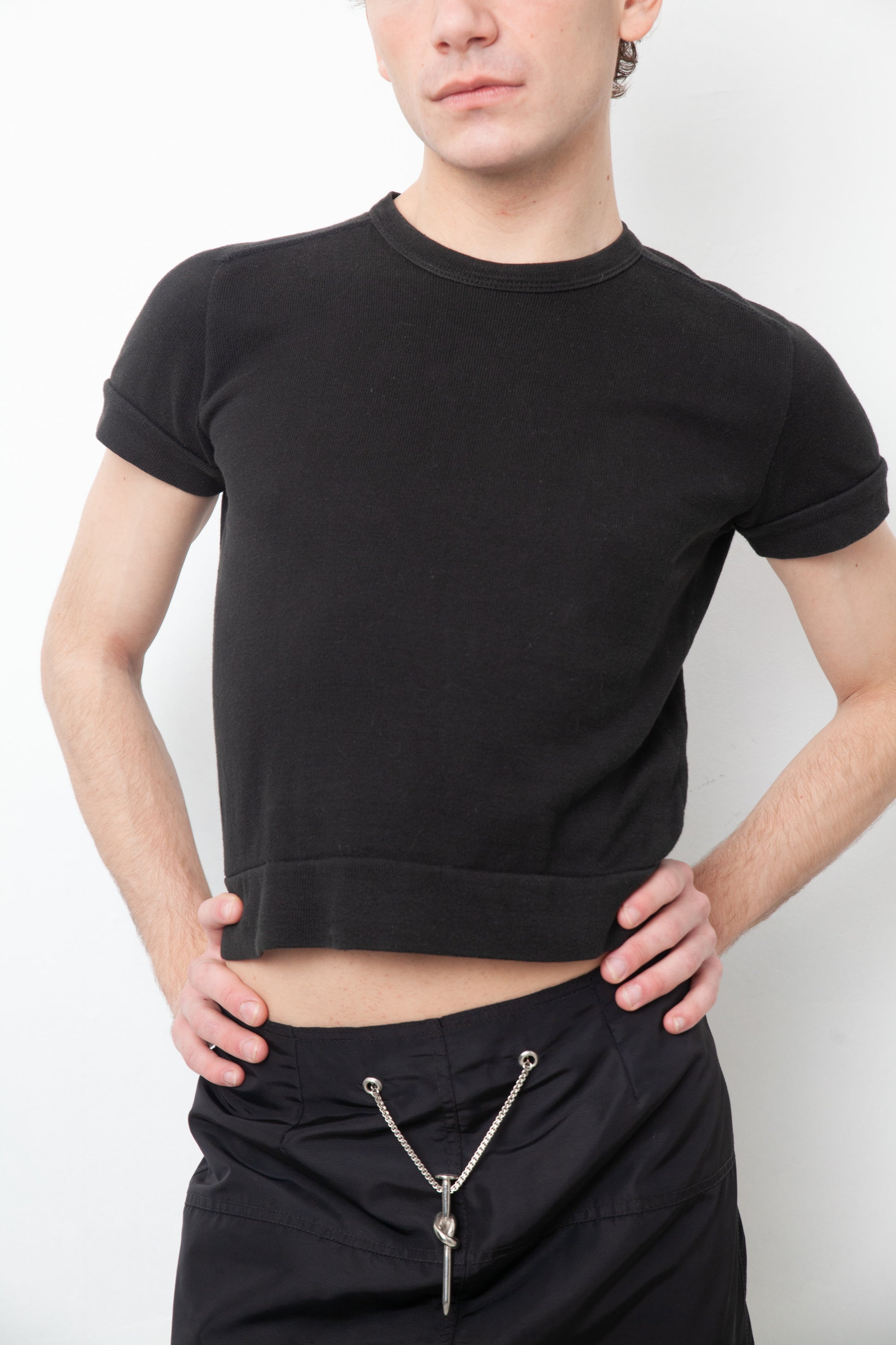 The shirt is made of a soft stretchy cotton and is slightly cropped.