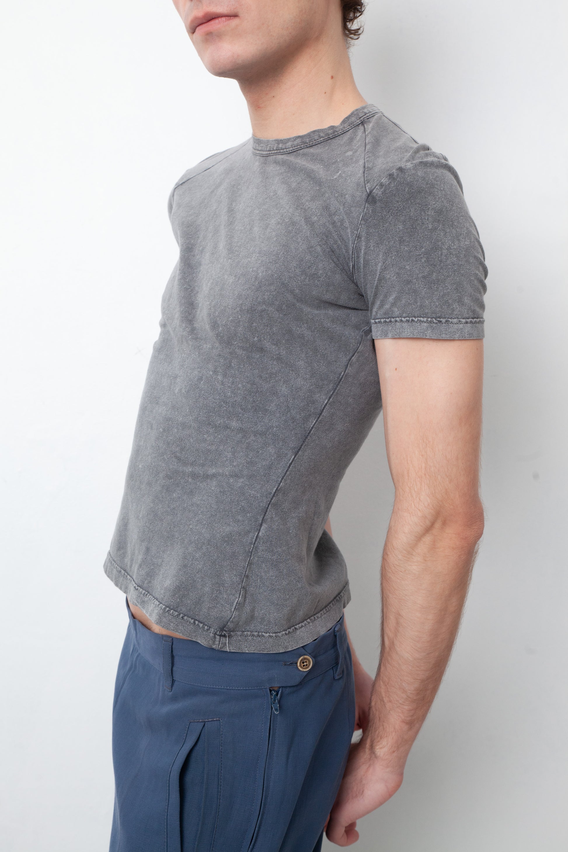 Martin Margiela late 90's stretchy cotton tee in a washed out grey with biased cut.