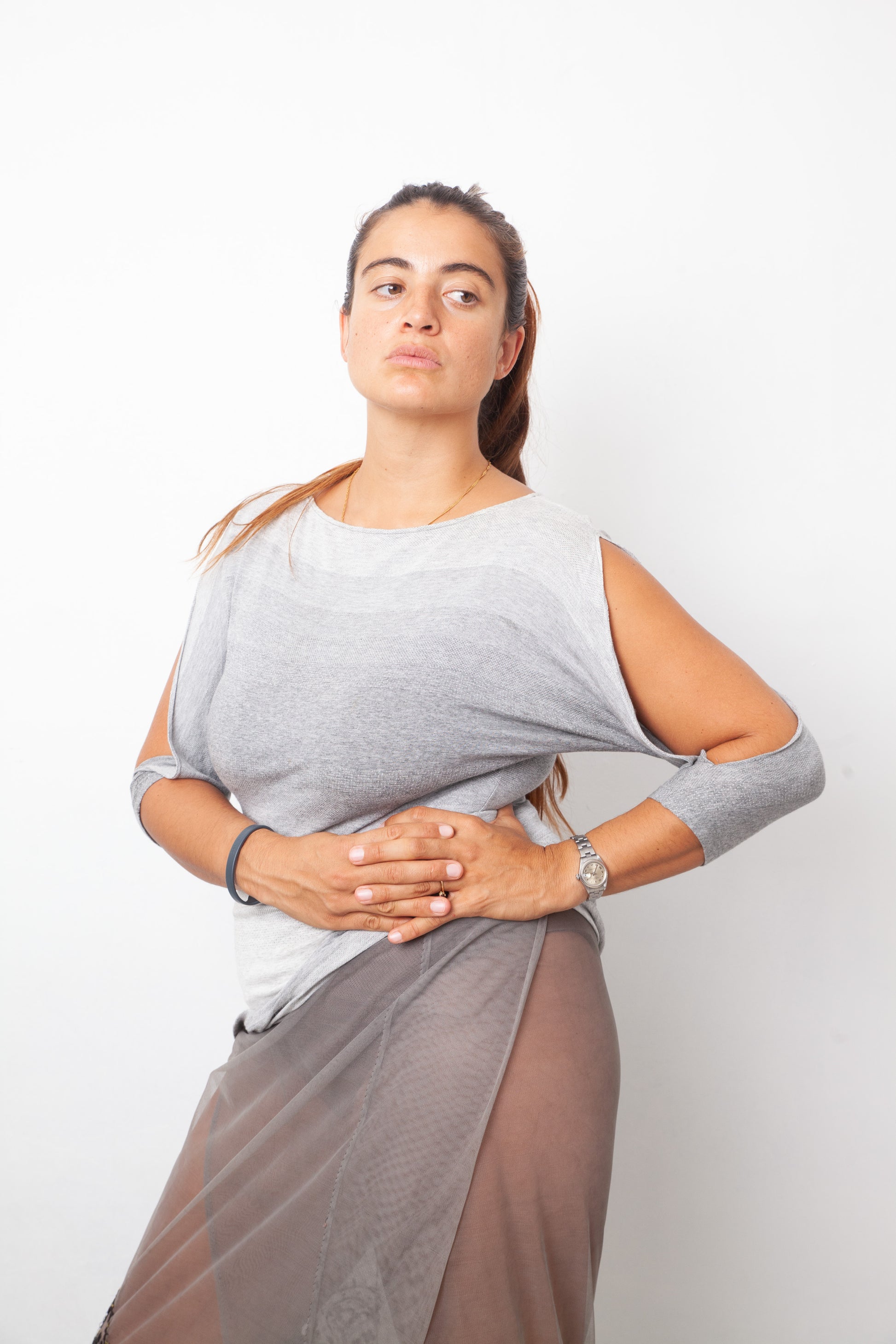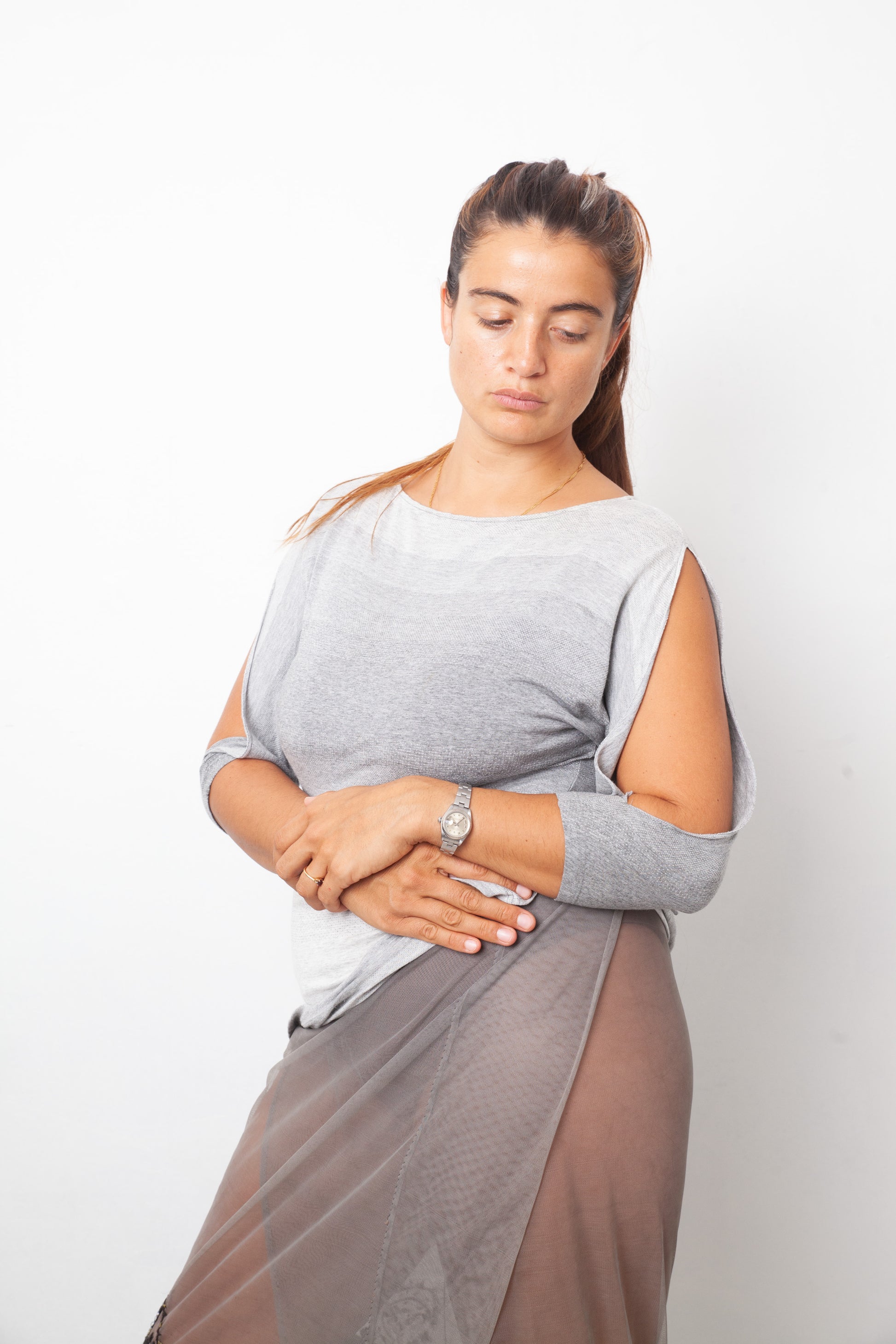 Margiela line 4 Spring 2001 gradient grey top with cut out sleeves
