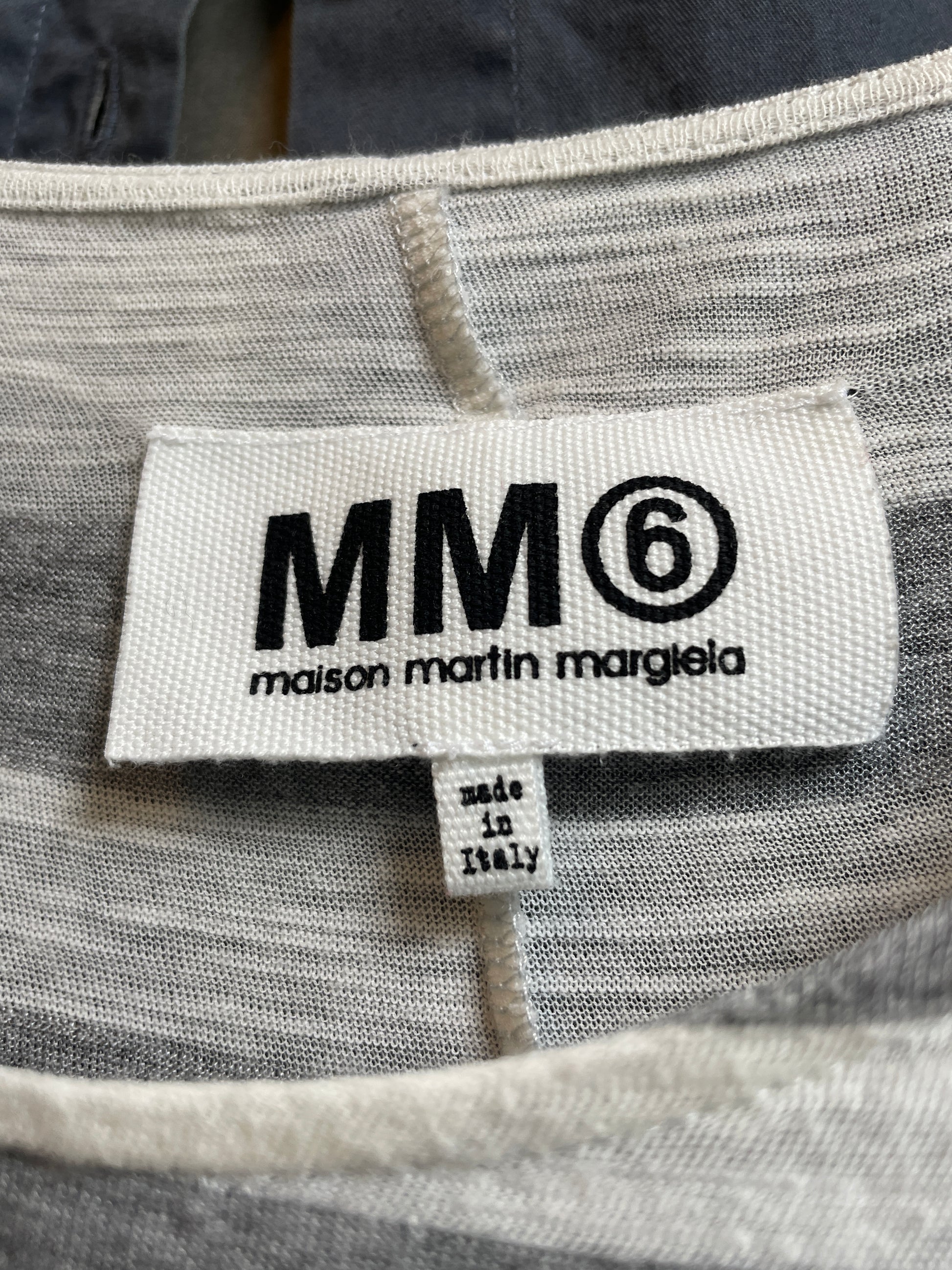 Margiela MM6 2012 striped grey and white cotton dress with waist cut out