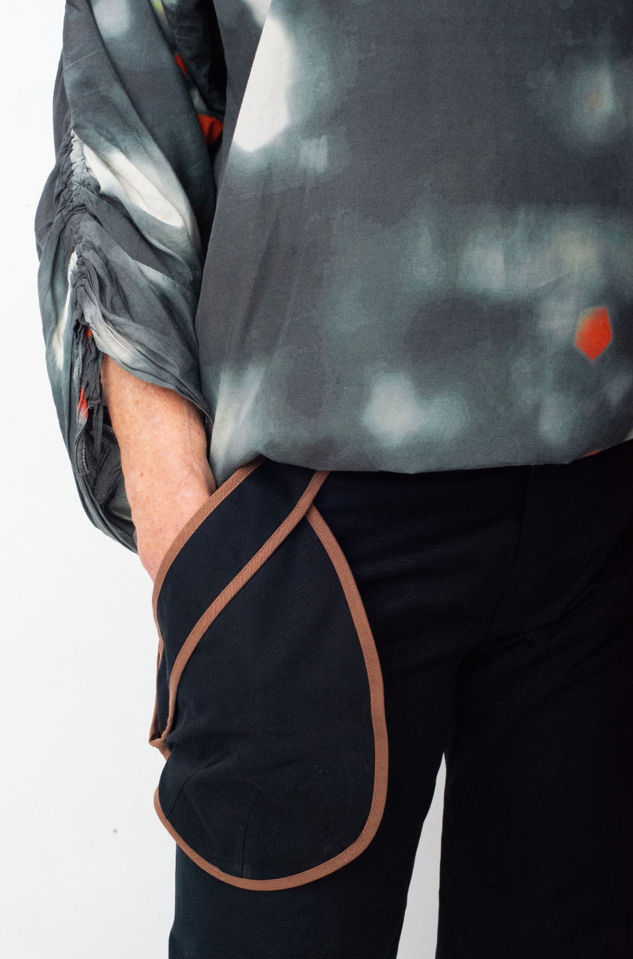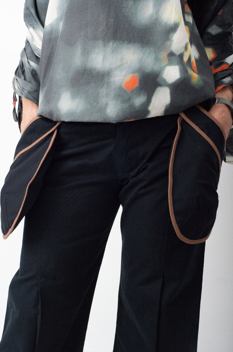 These black capri pants by Marni are a fun and original piece to add to your wardrobe. In an original twist, the pockets of the trousers appear outside rather than inside, adding a touch of humour to its design. The right pocket is connected to the back pocket with soft rounded corners.