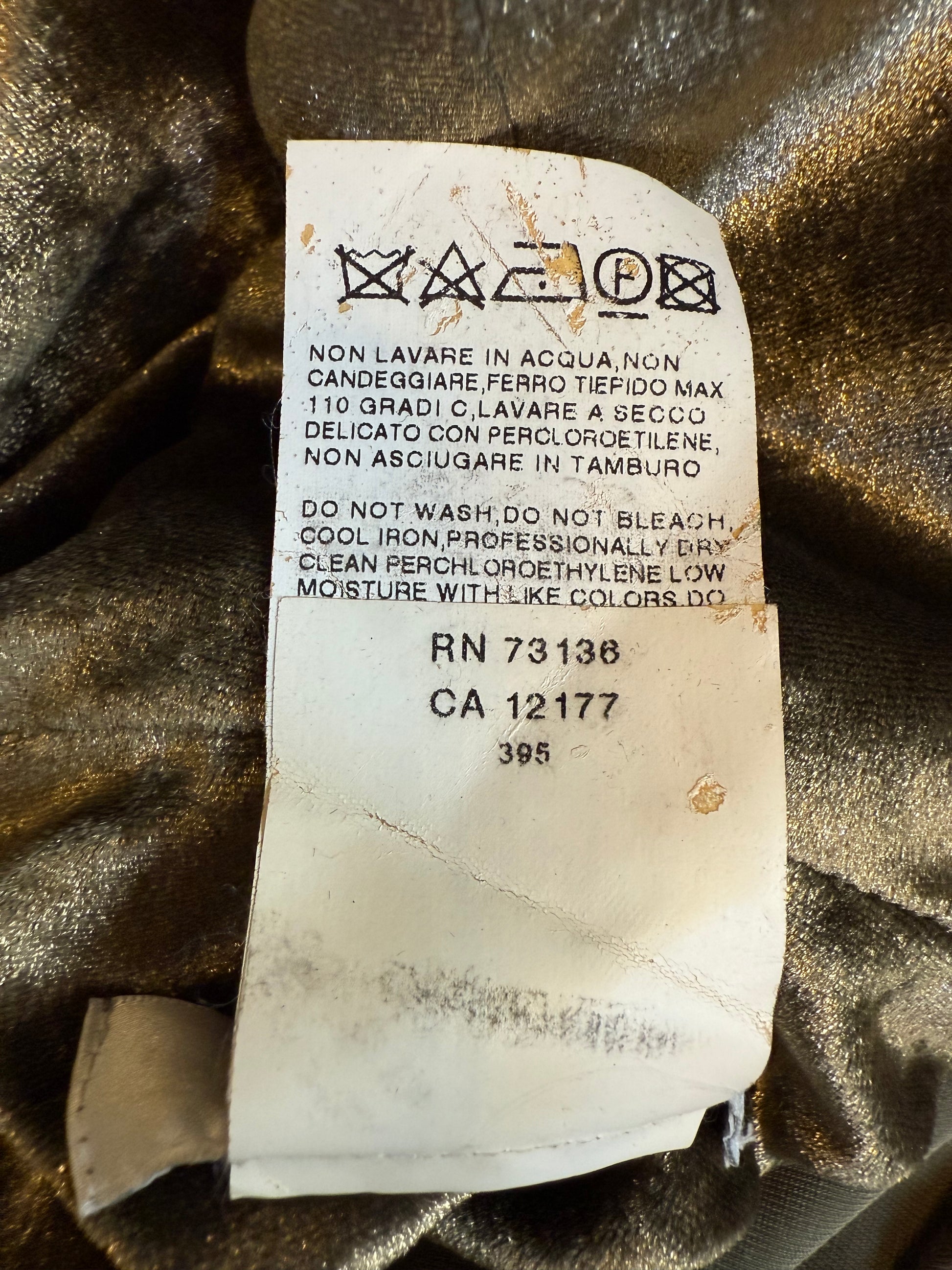 Max Mara golden wrap dress with large hood. The dress closes with a belt wrapped around the inner waist and closed with snap buttons.