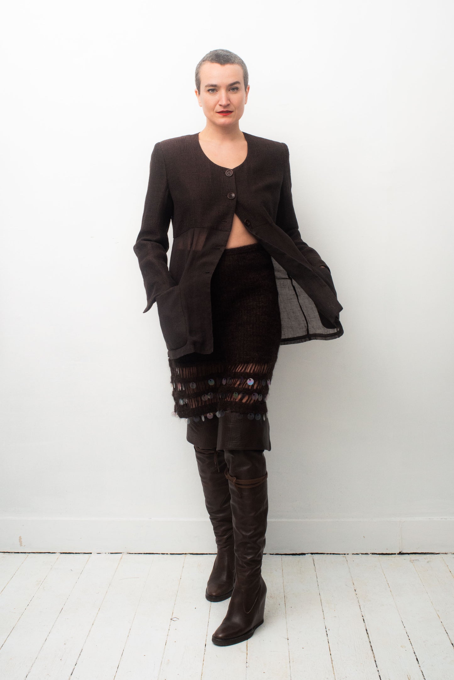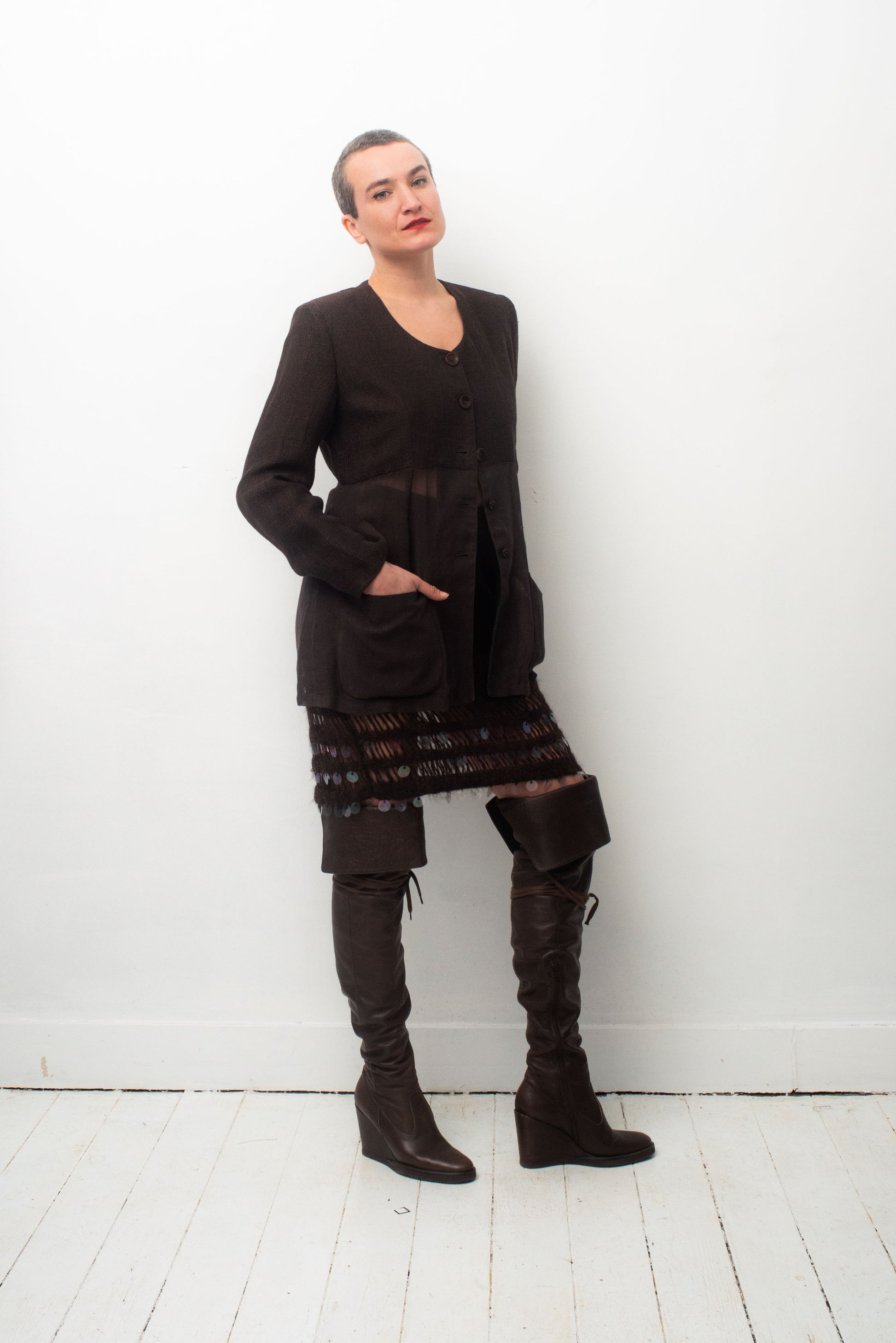 Moschino Cheap & Chic 90's brown linnen jacket with transparency