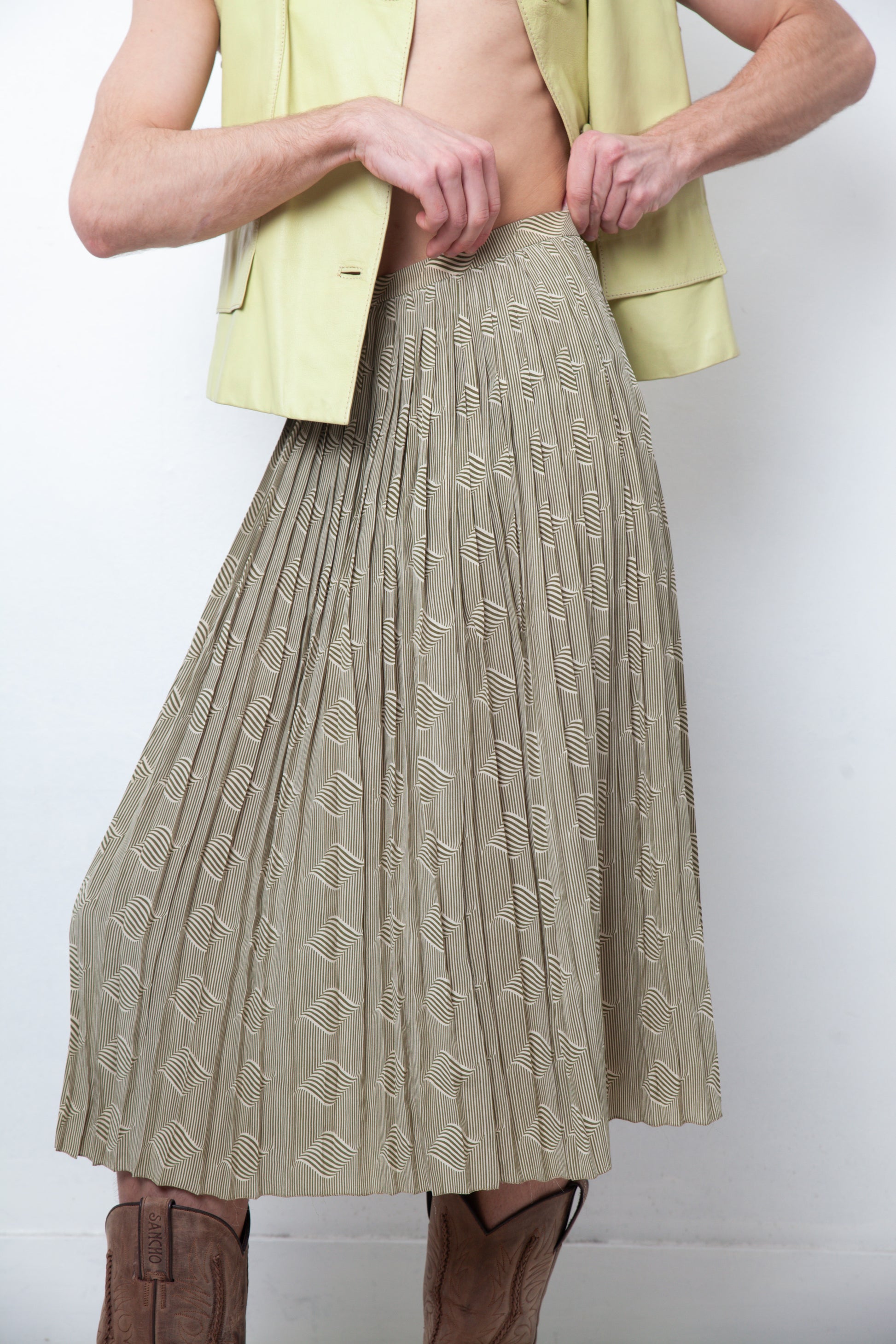 Pierre Cardin 1970's green pleated graphic print skirt