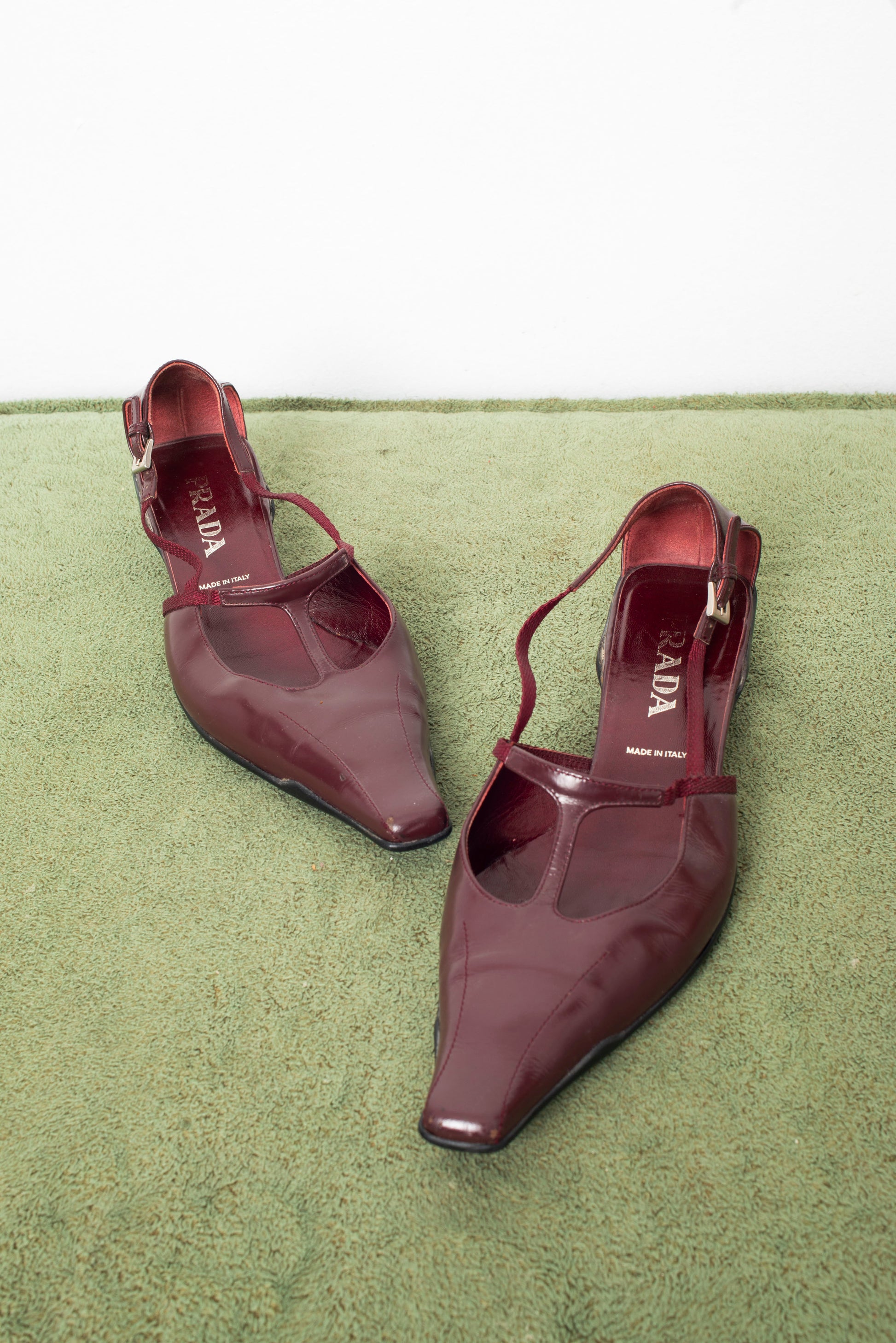Beautiful Prada burgundy leather kitten heels from early 2000's.