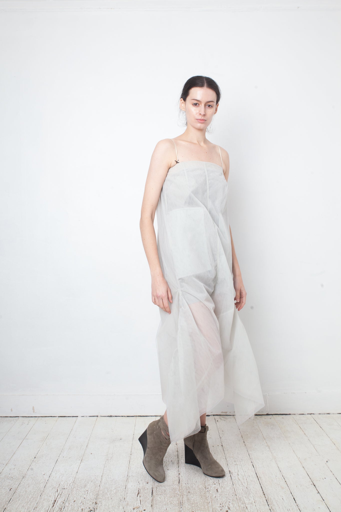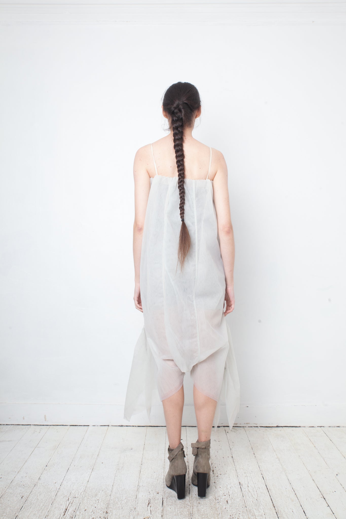 Rick Owens SS 2015 organza strapless low crotch jumpsuits with huge front pockets and triangle extensions at legs