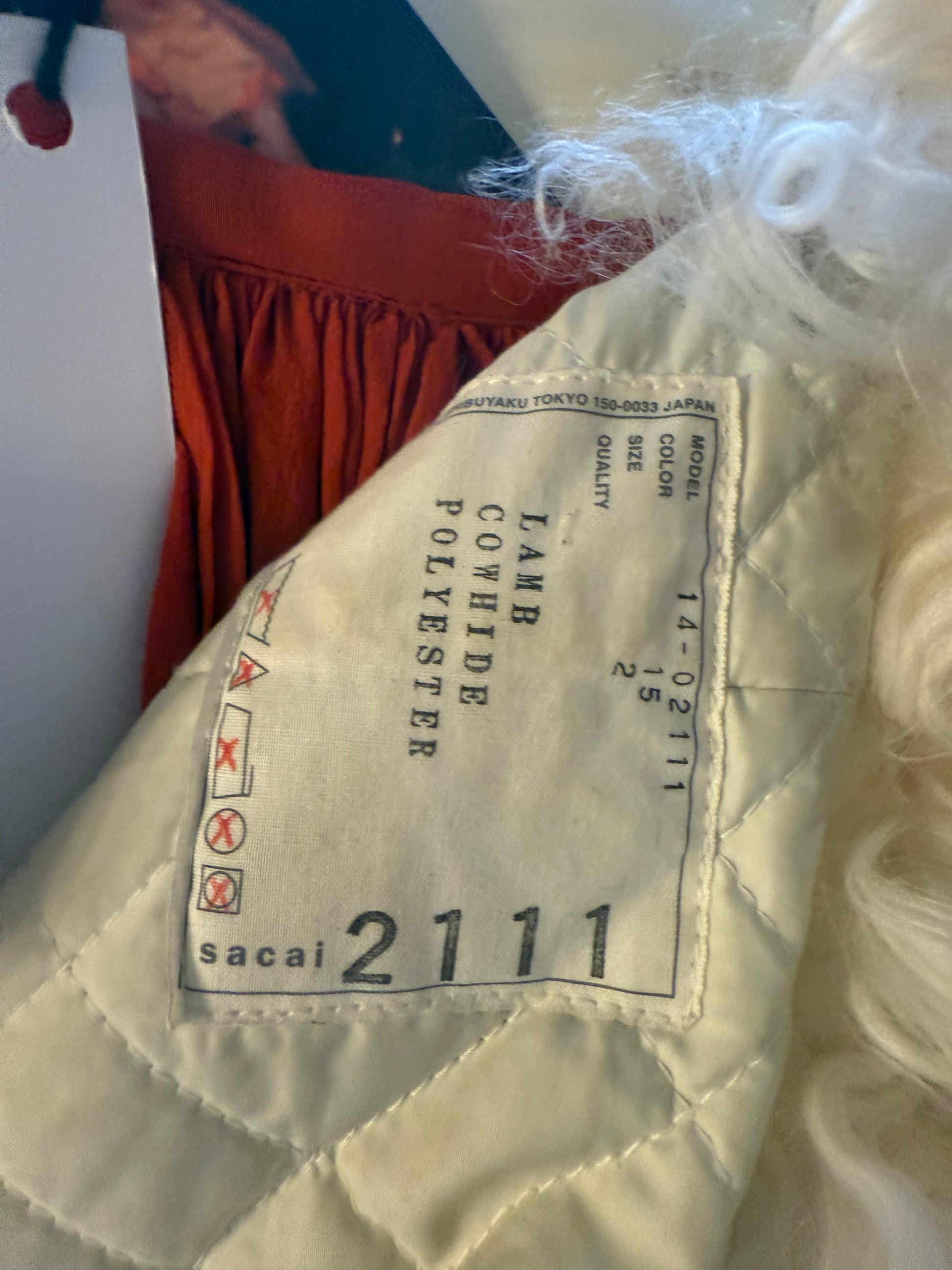 Sacaï Fall 2014 mongolian fur sleeveless leather jacket