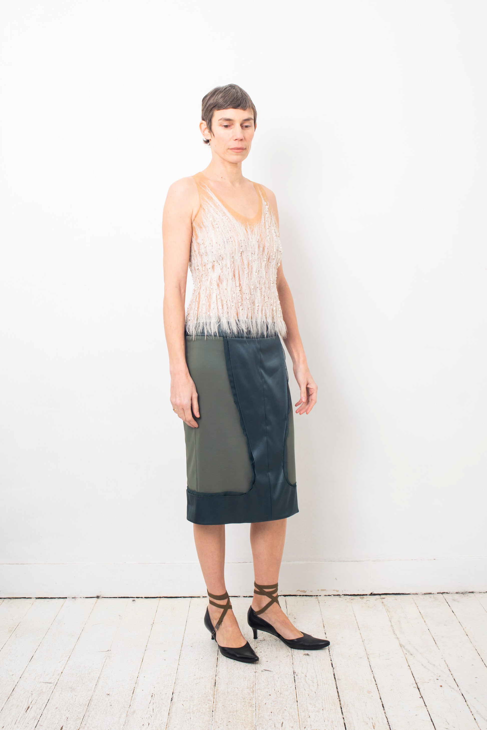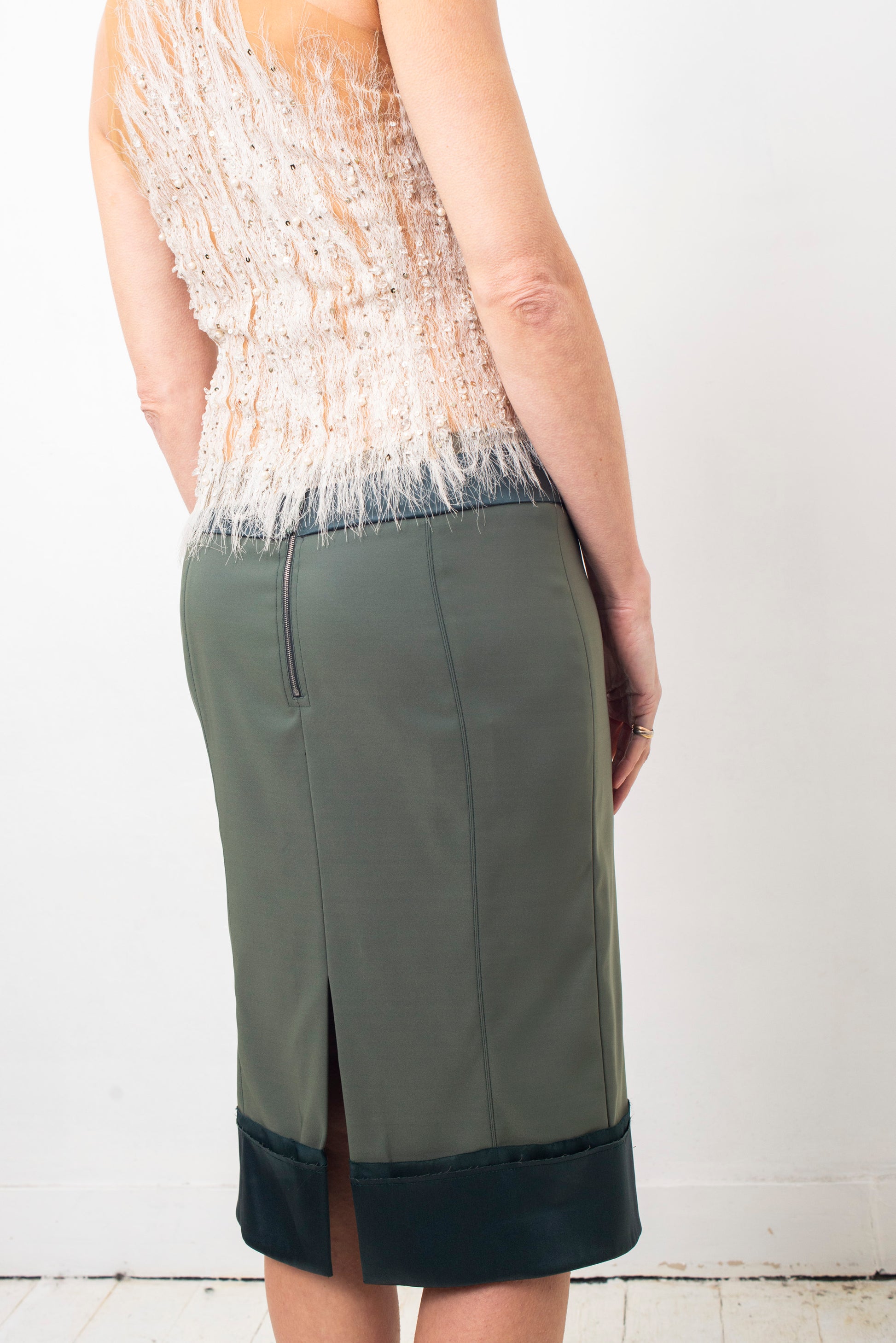 Stella McCartney 2000's green silk midi pencil skirt