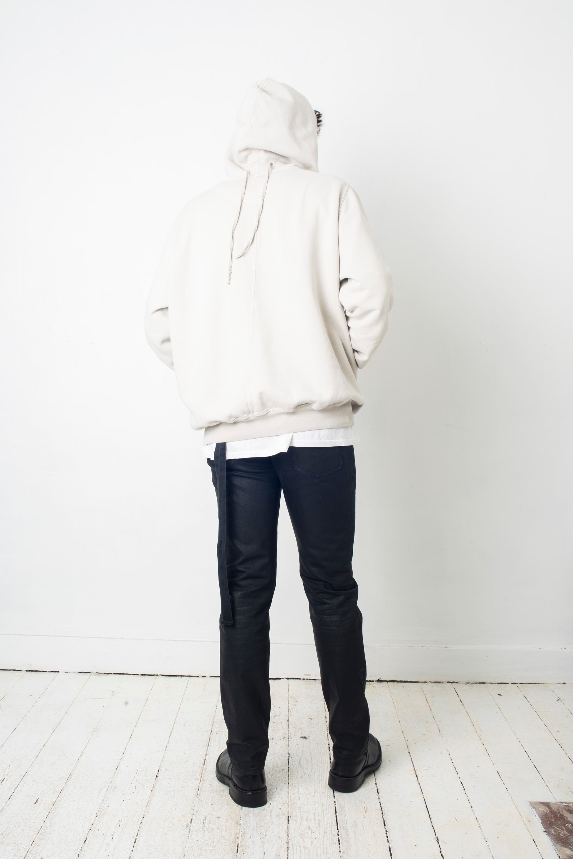 Rick Owens white / grey hoodie with reversed drawstring