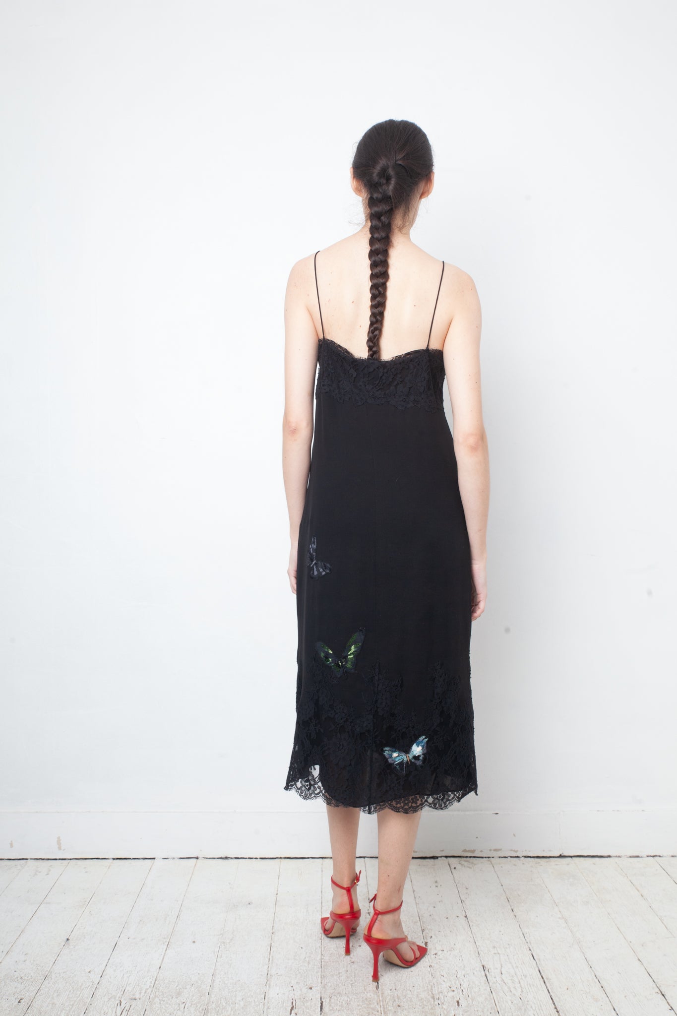 Valentino silk crepe de chine slip dress with lace trims and butterfly embroideries.