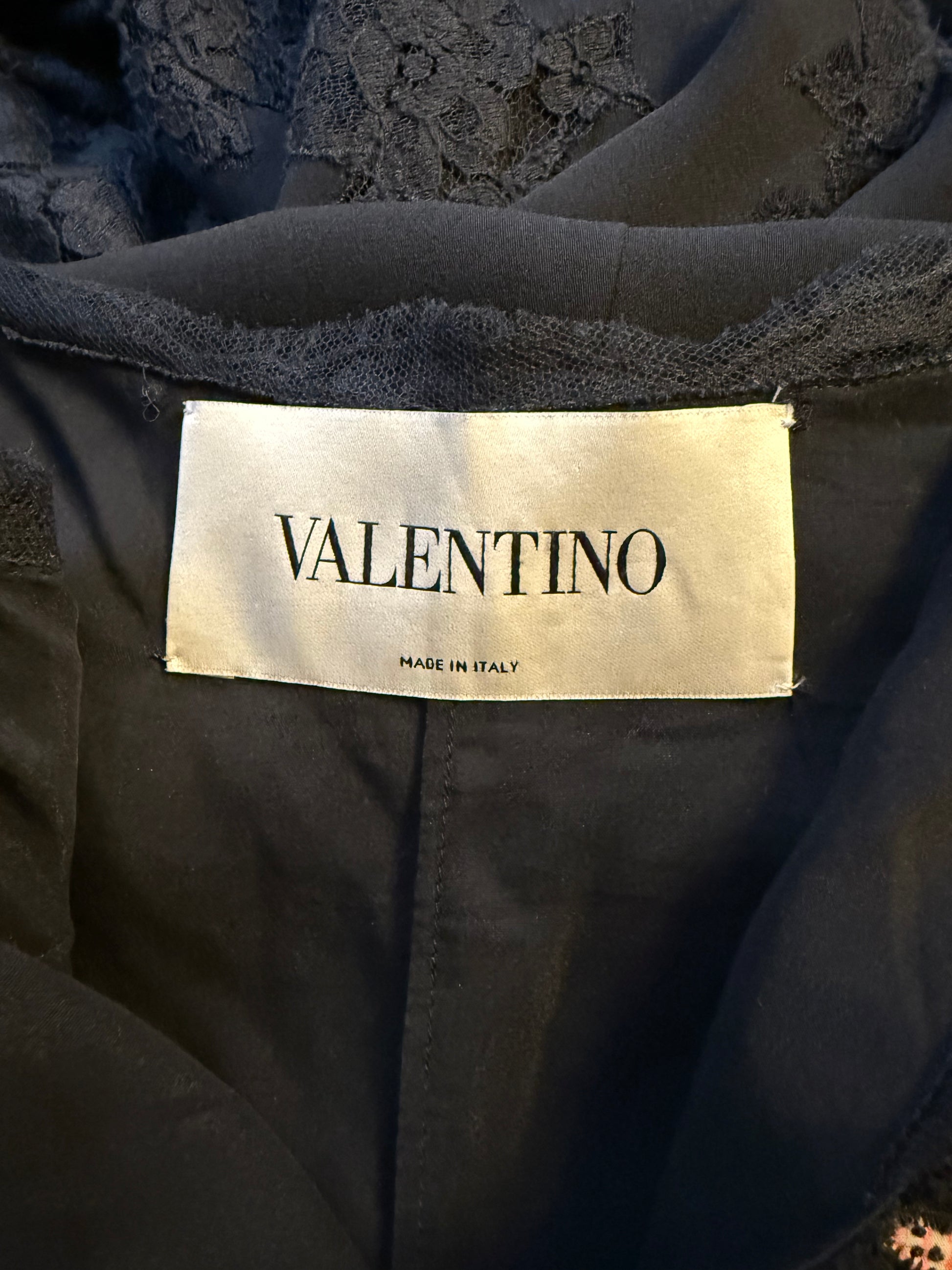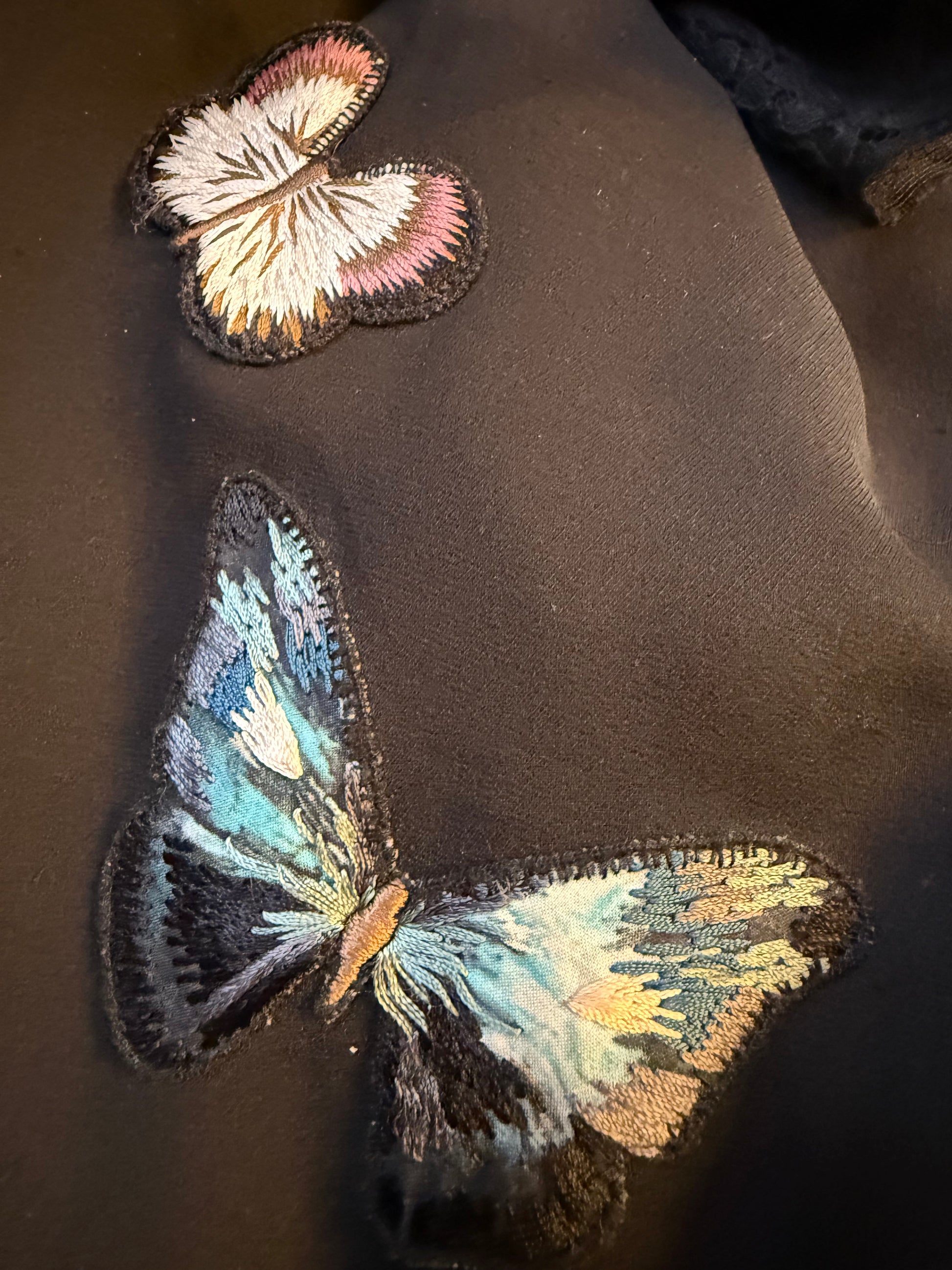 Valentino black slip on dress with lace trims and butterfly embroideries