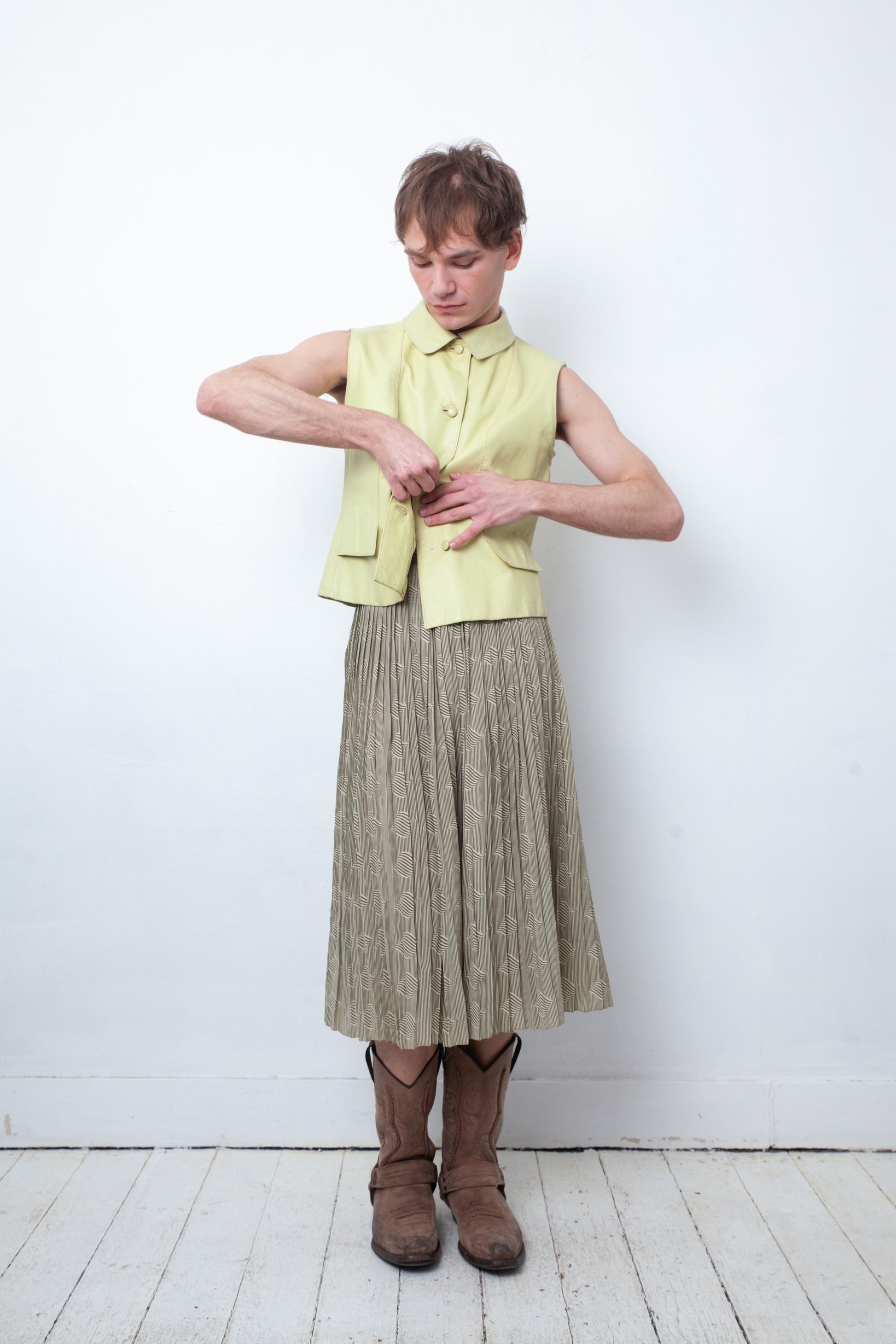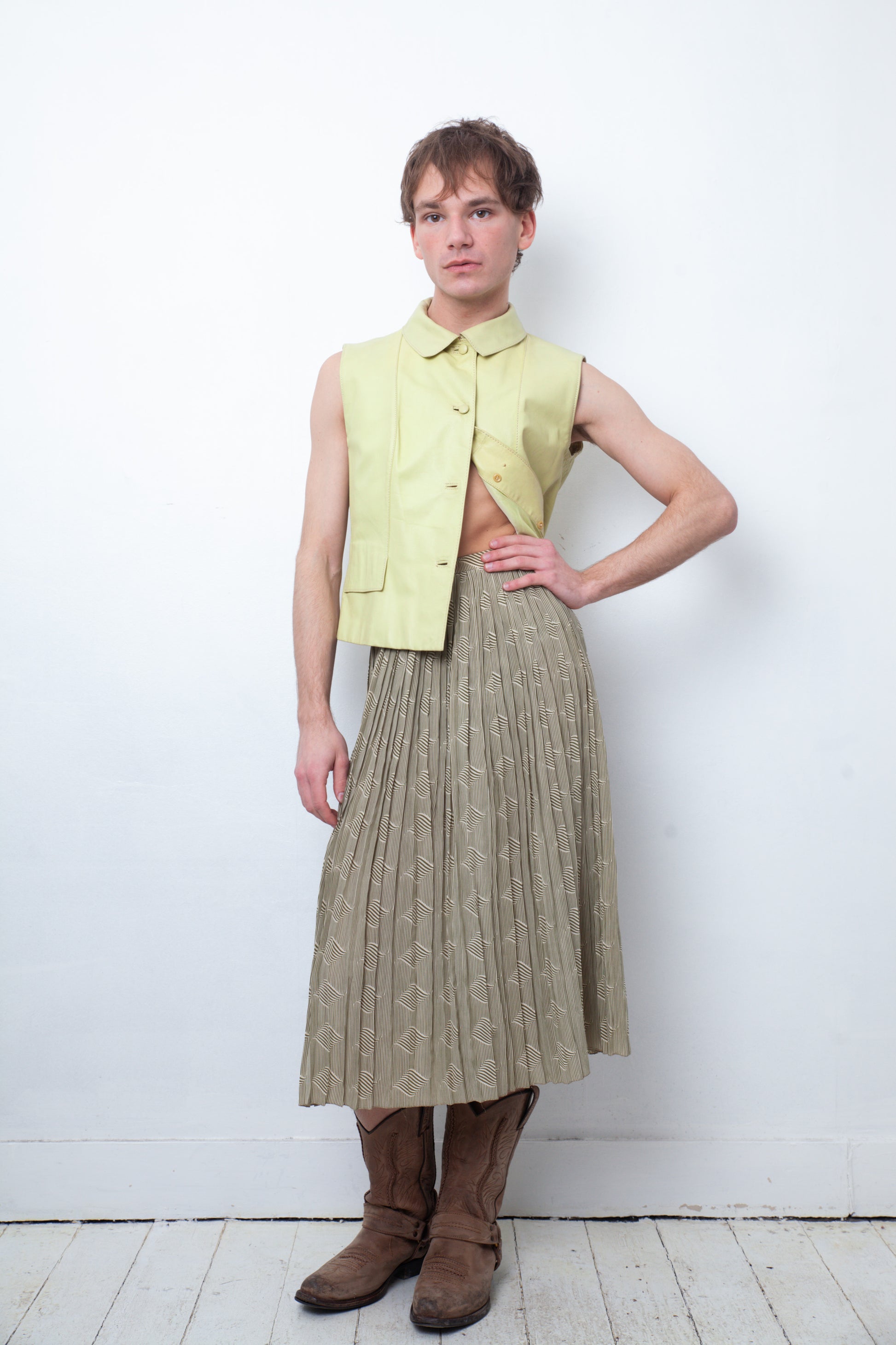 Here worn with a 70's silk Jean Patou green pleated skirt, also available online.