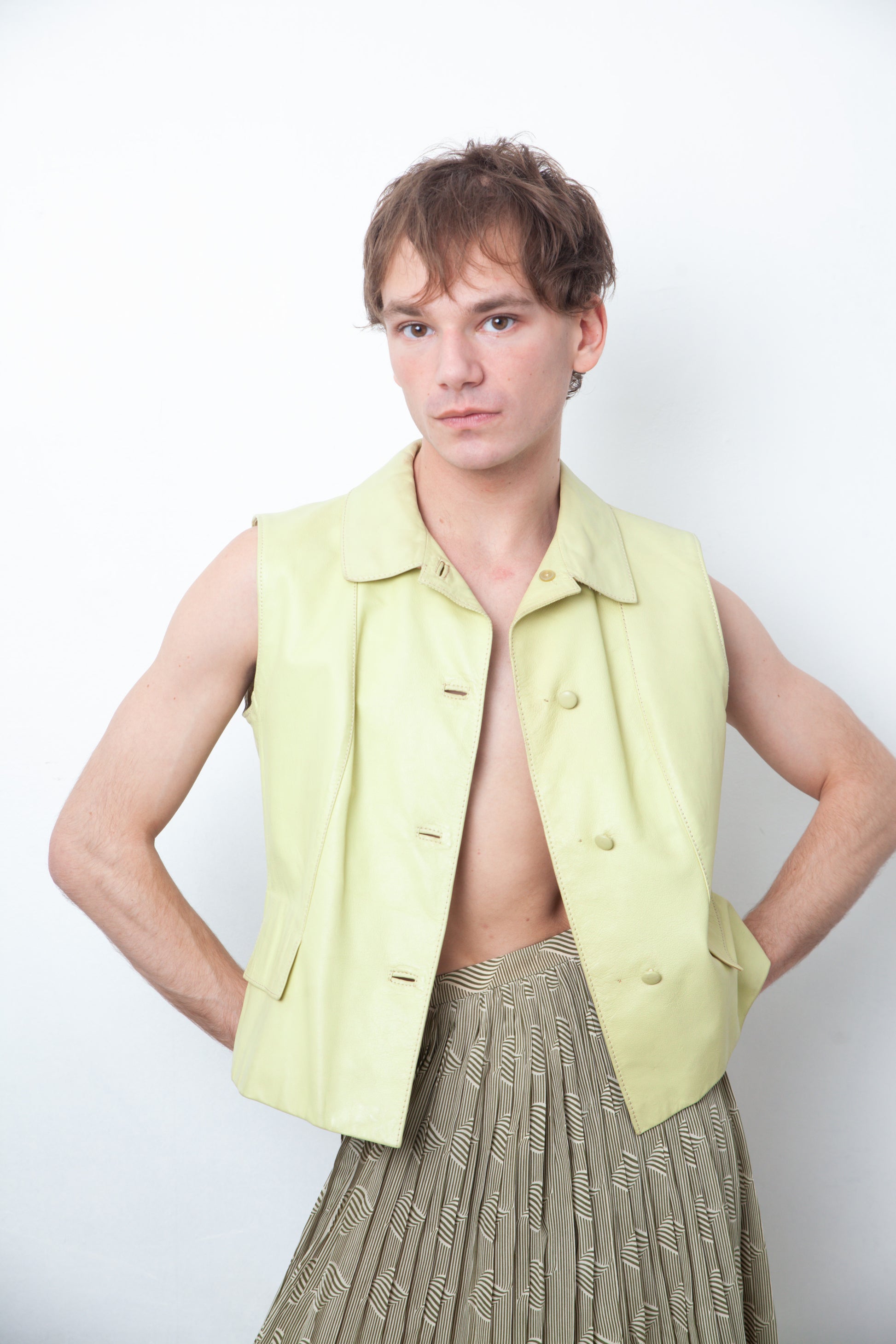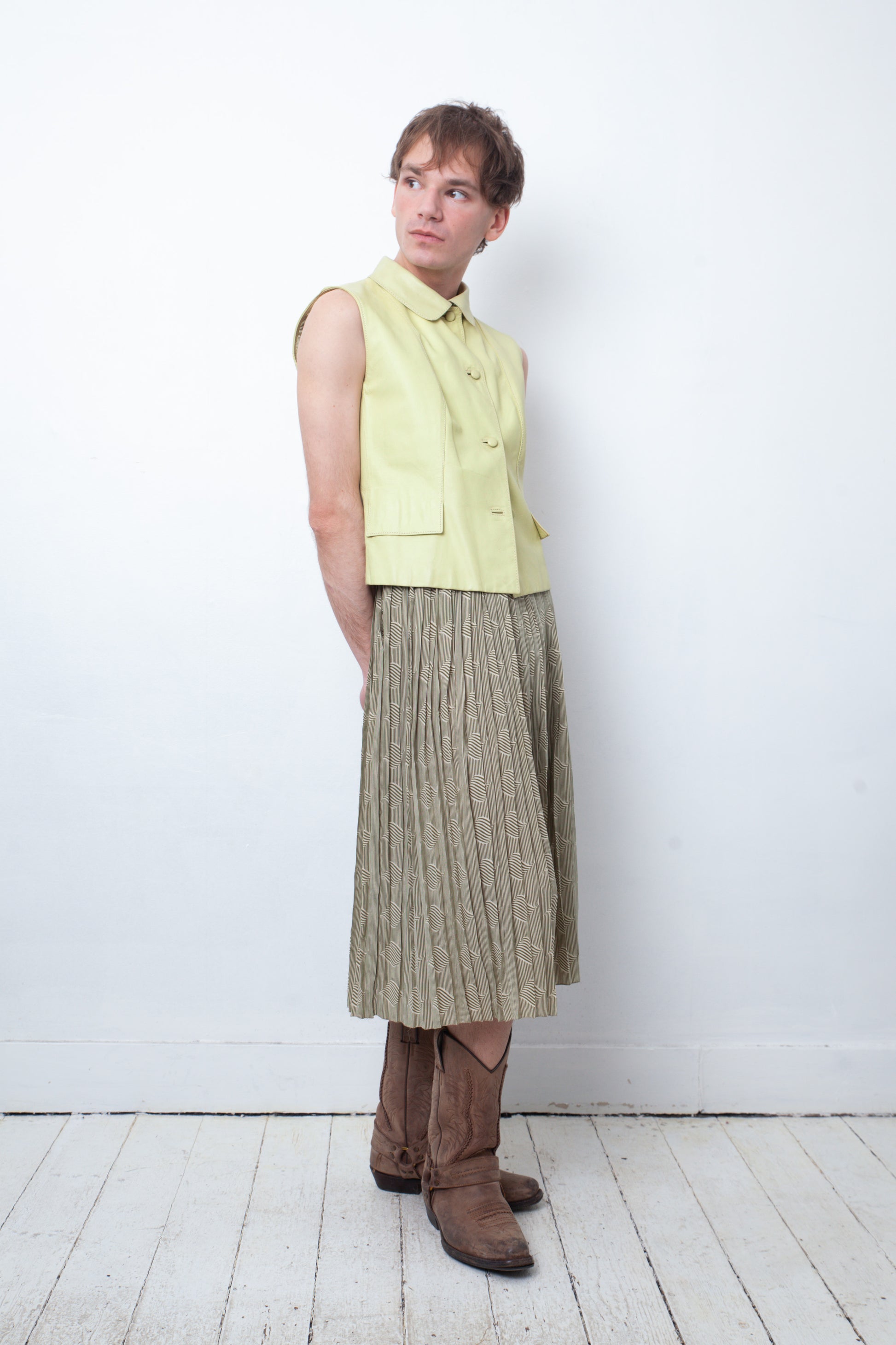 Leather gilet in a beautiful chartreuse green from the 80's, handmade in Italy