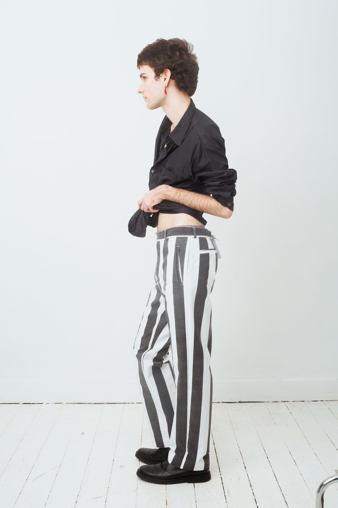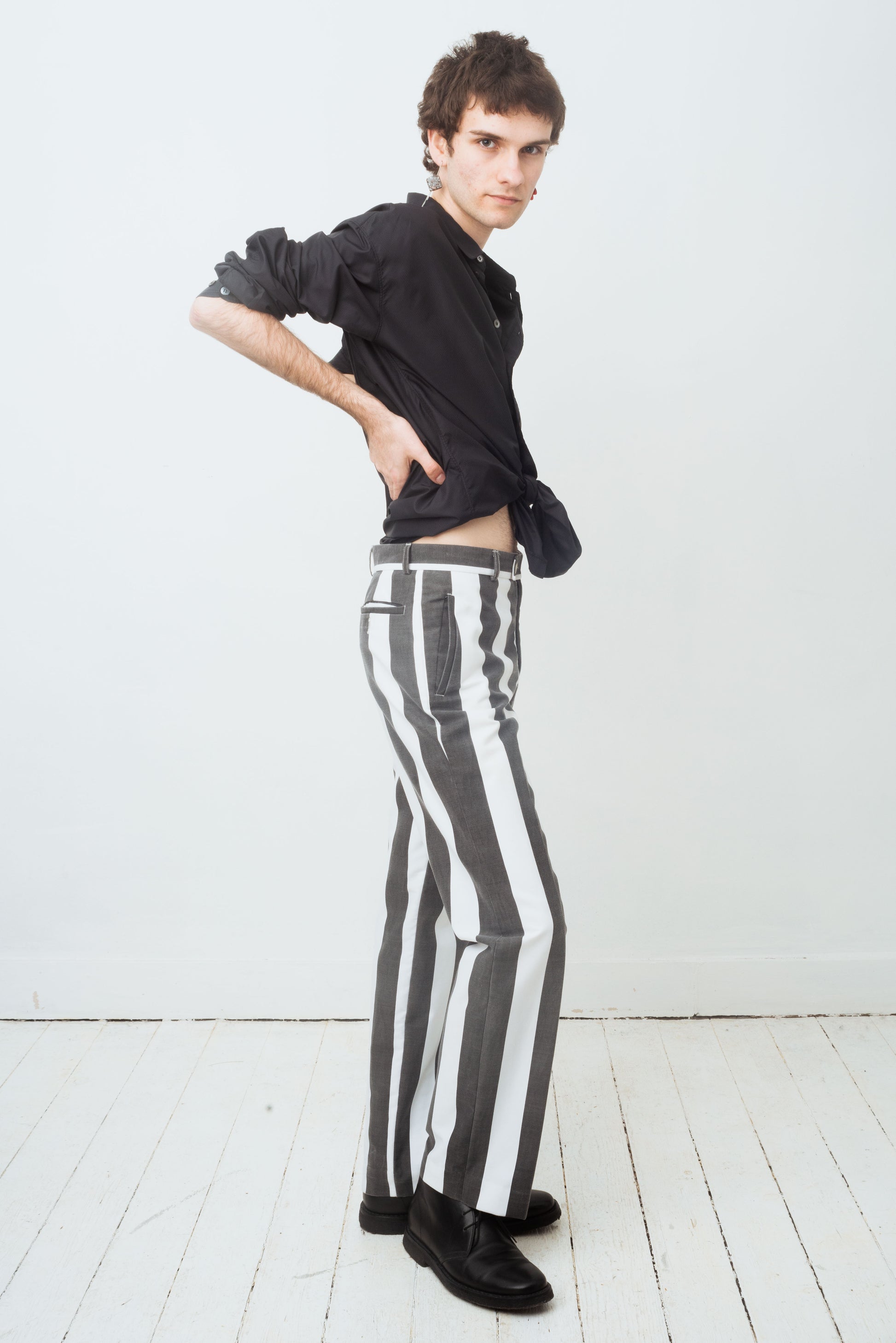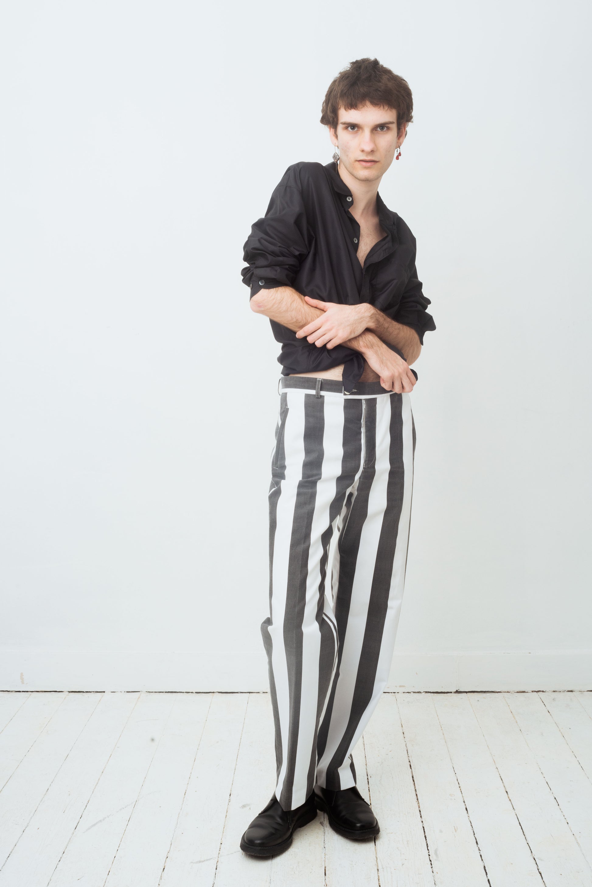 Beautiful 90's black and white striped pants, by Belgian designer Xavier Delcour.