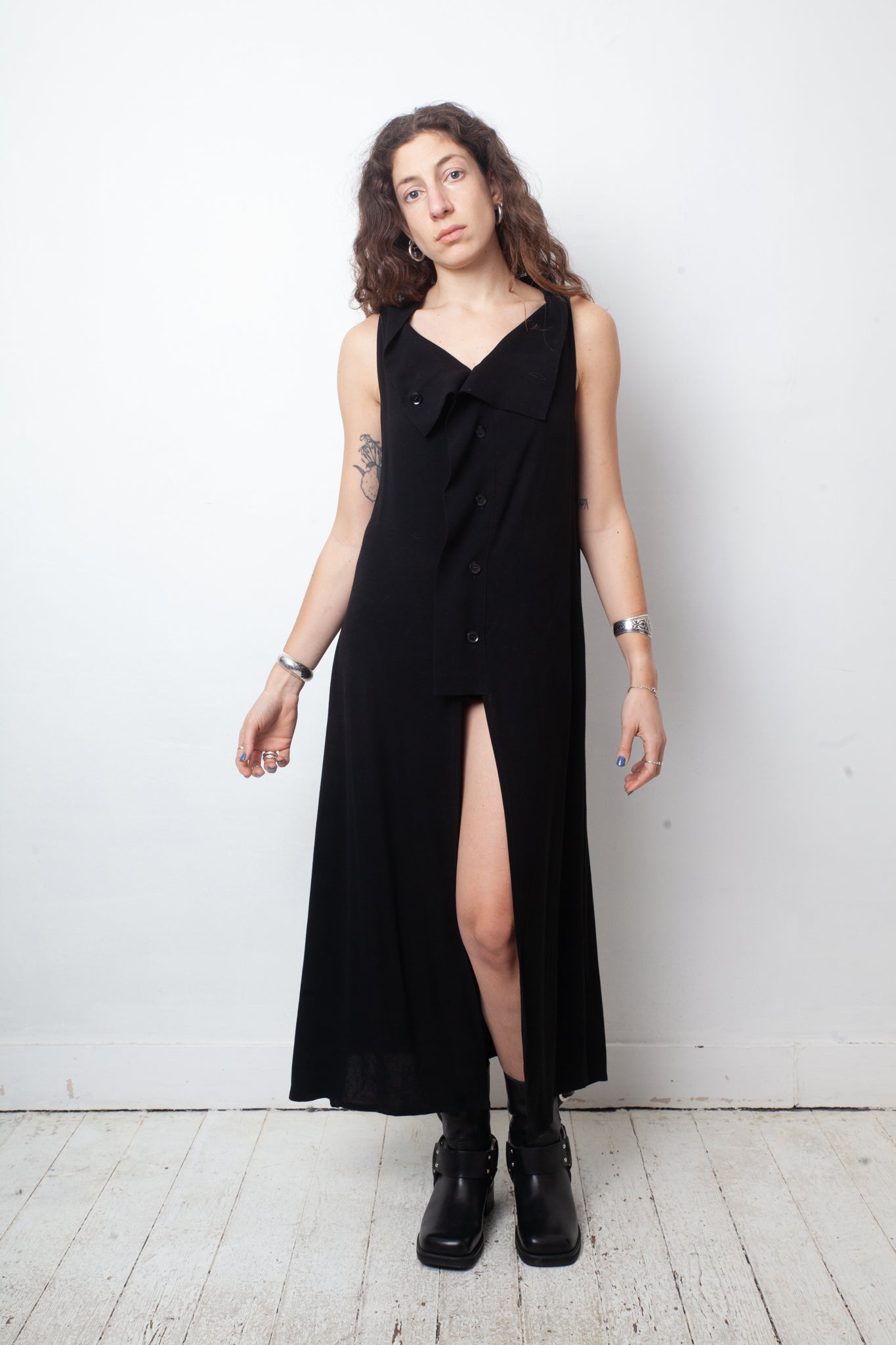 Y’s by Yohji Yamamoto 90’s black rayon sleeveless long cardigan.