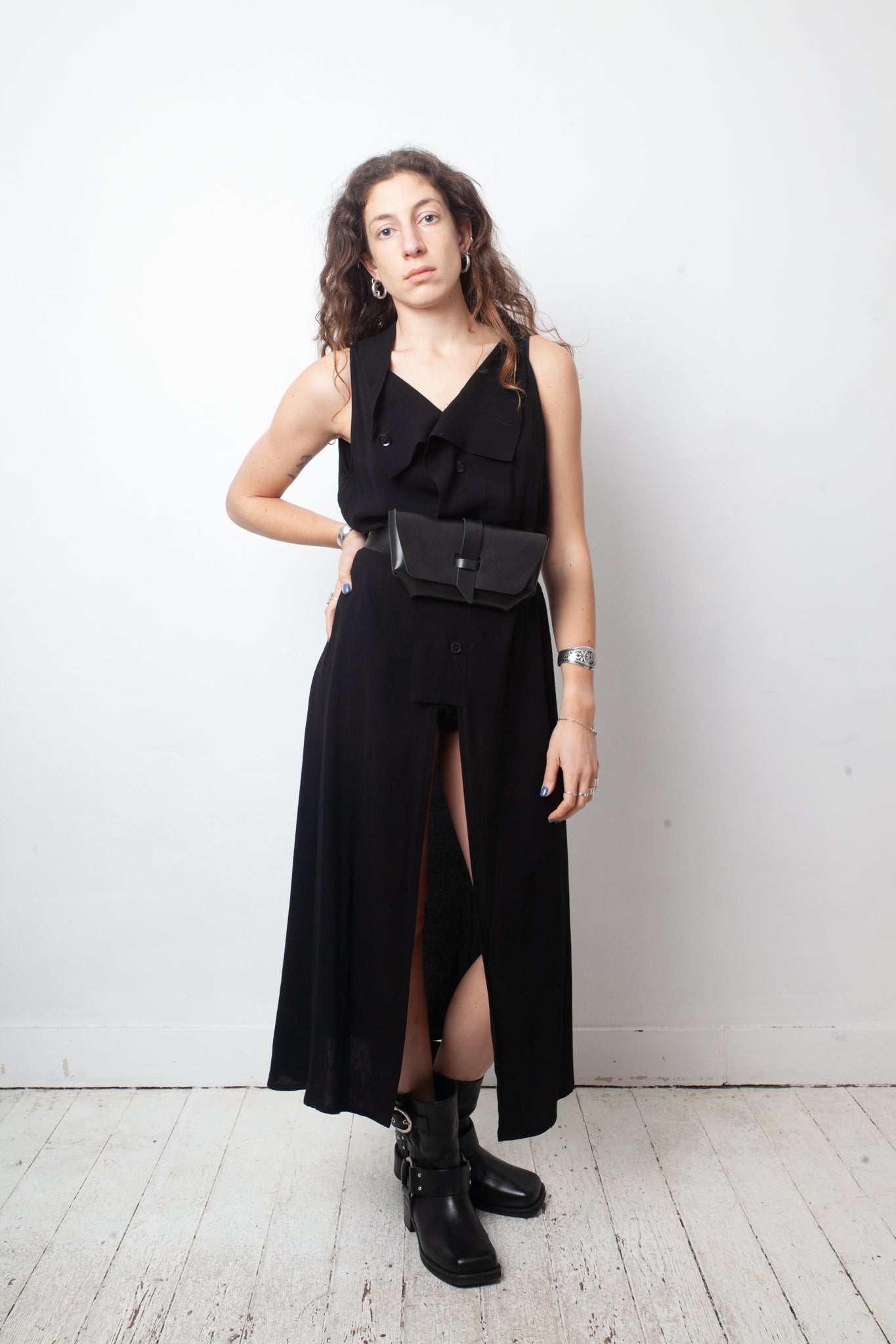 Yohji Yamamoto Y's 90's black long sleeveless gilet with double button closure