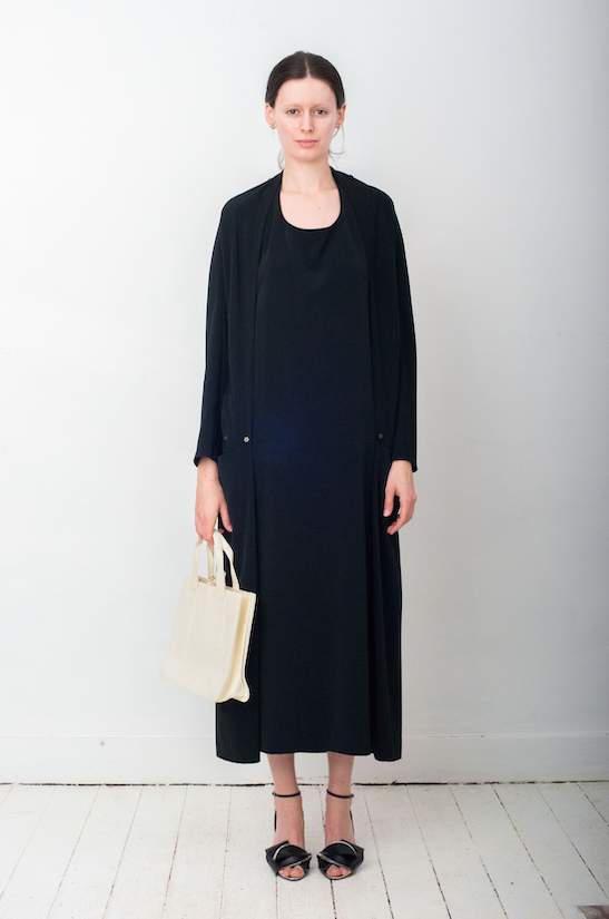 Here worn with Angelo Figus open toe heels and Issey Miyake white handbag, also available online.