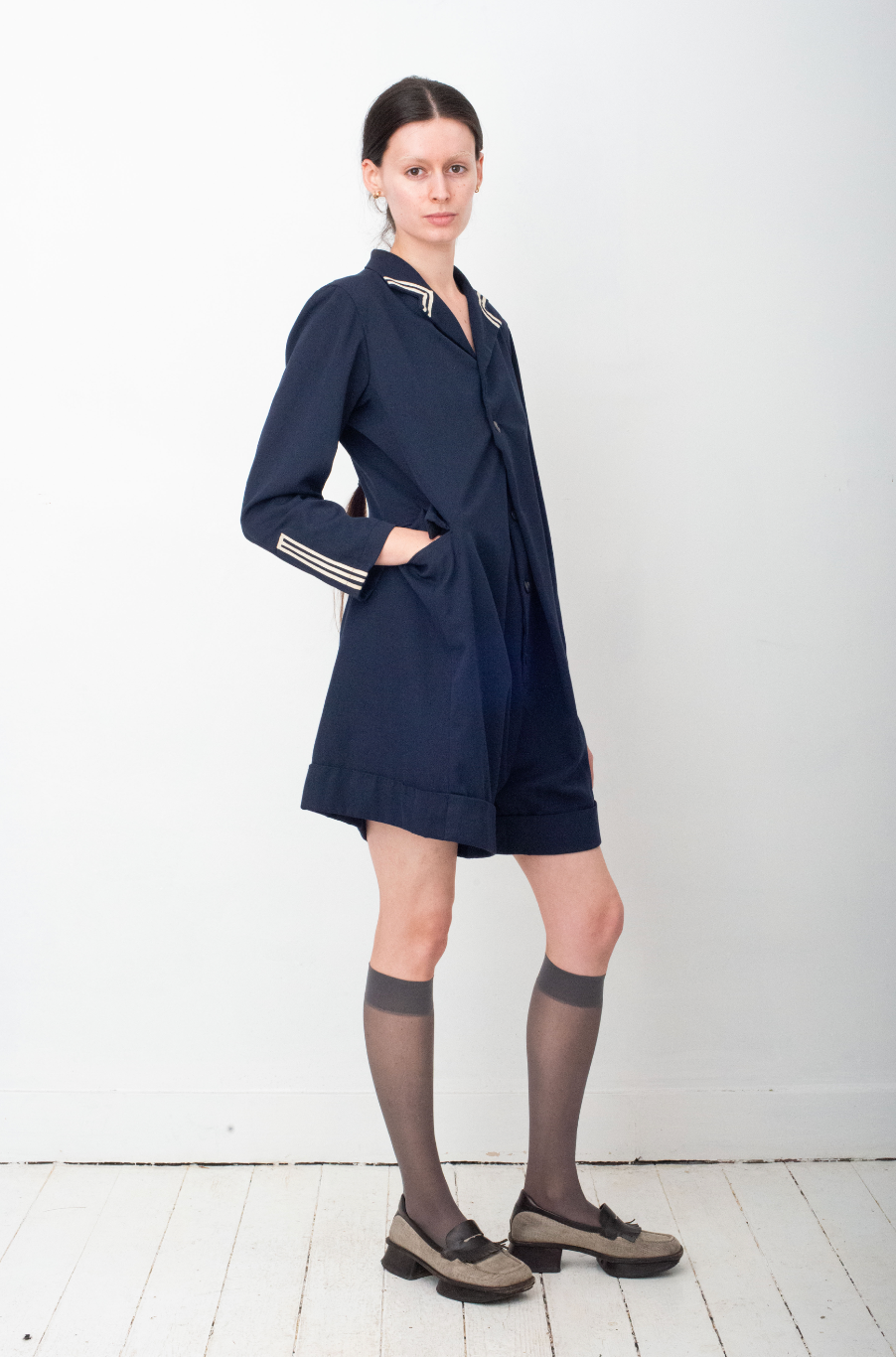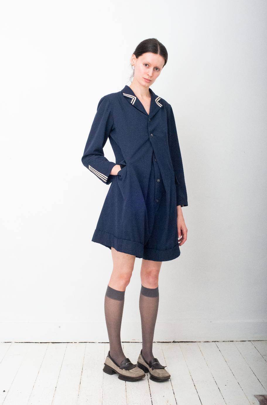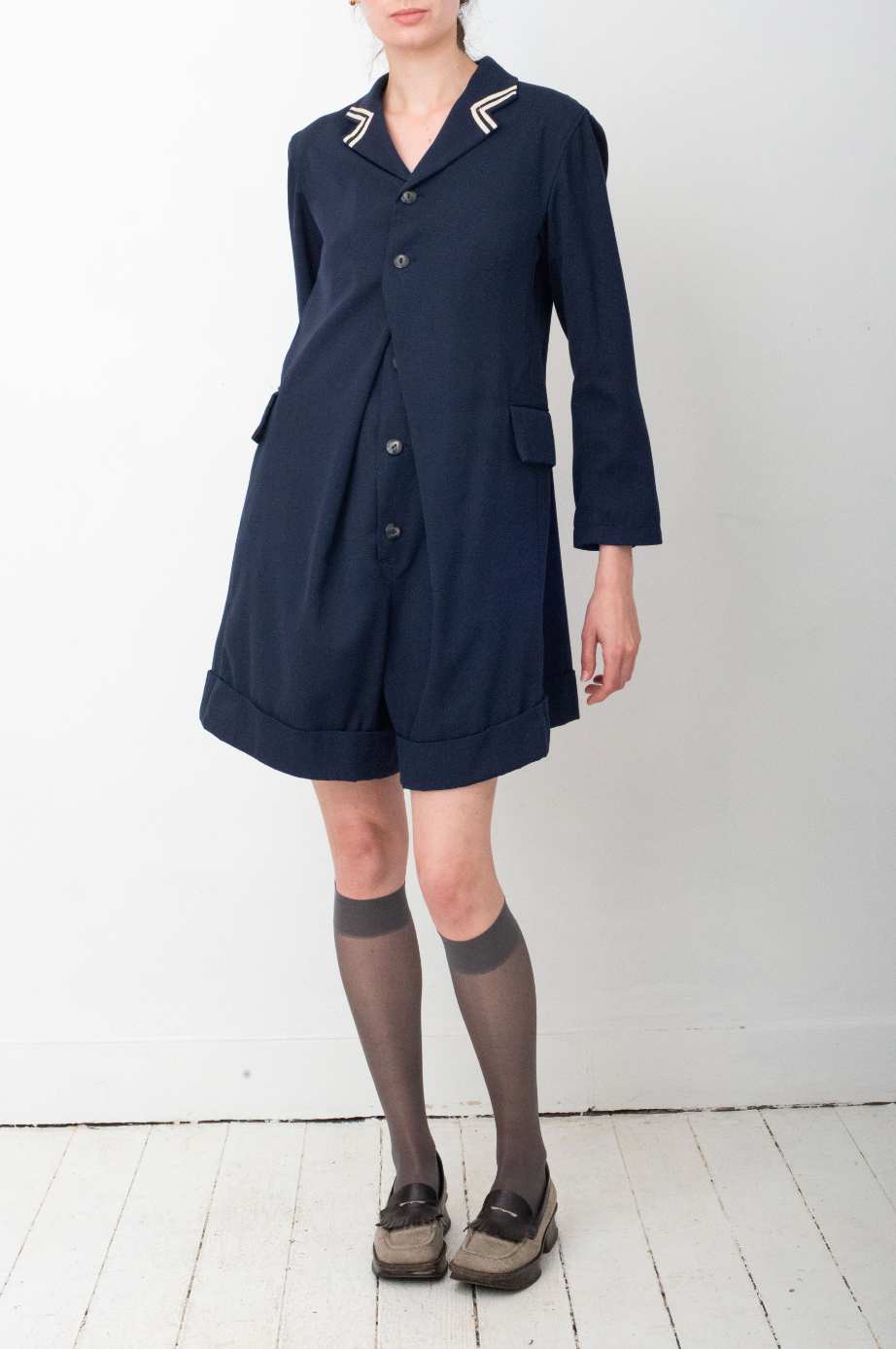 Yohji Yamamoto 1991 navy double buttoned playsuit.