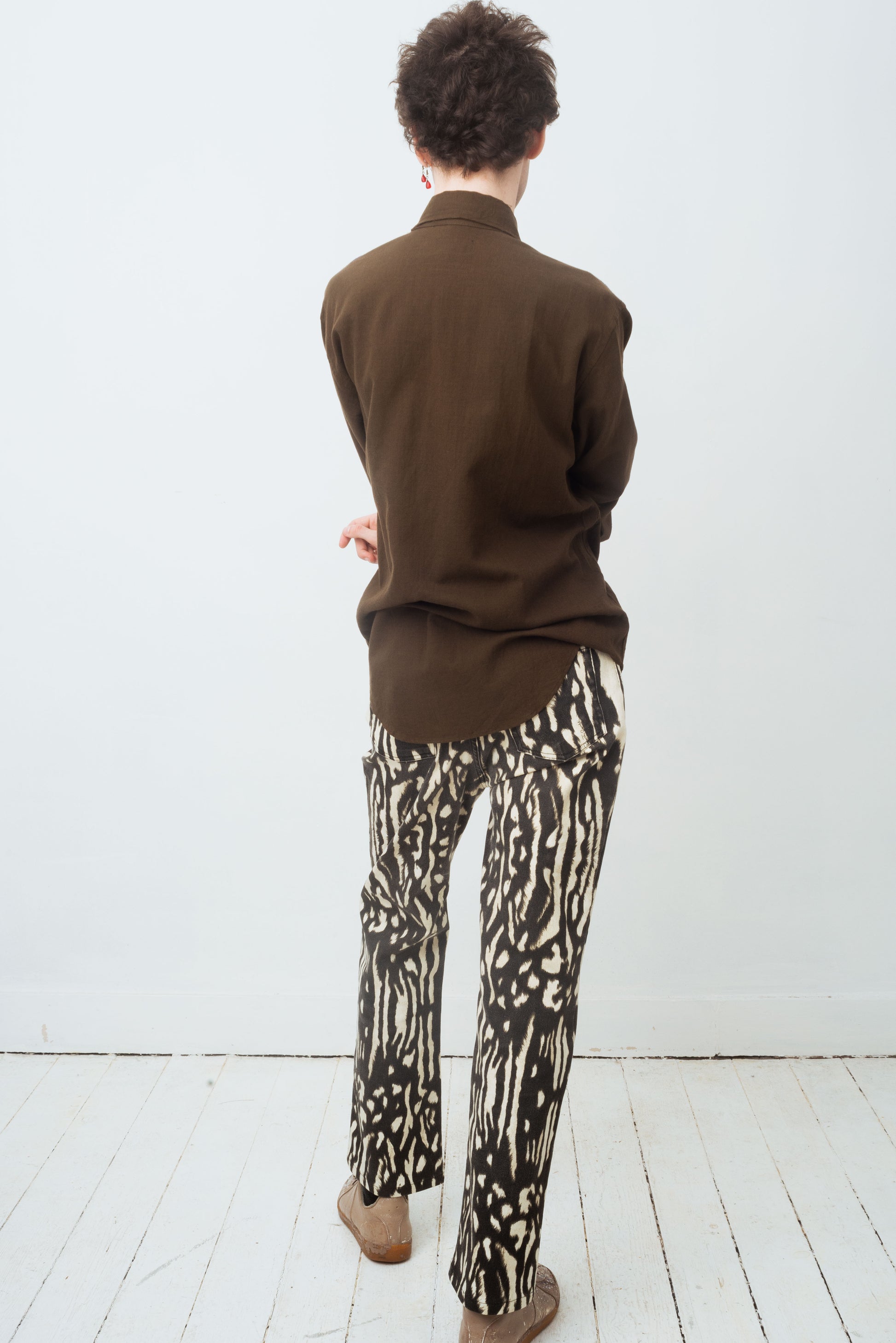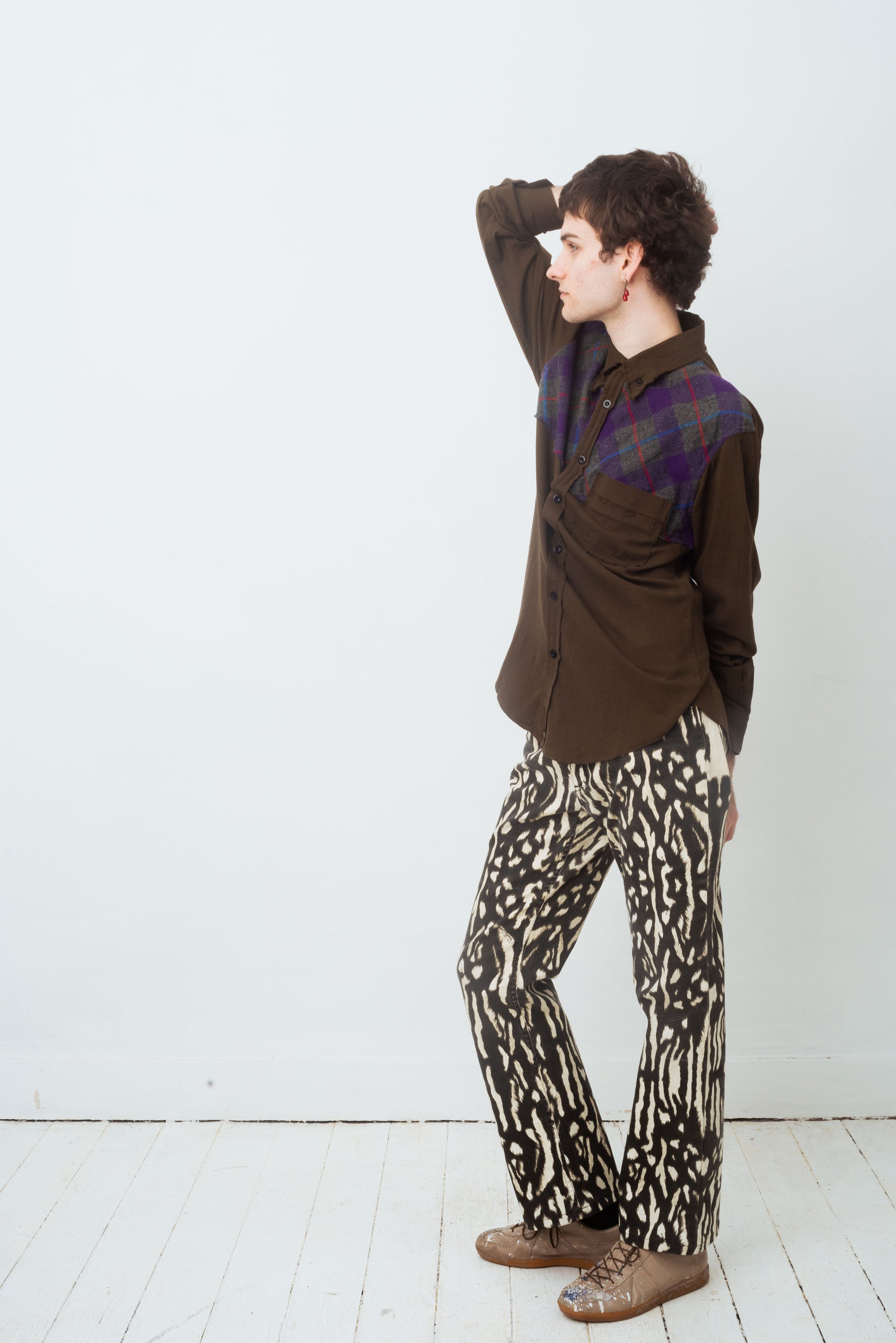 Beautiful khaki patchwork shirt from Yohji Yamamoto's Y's for men line.