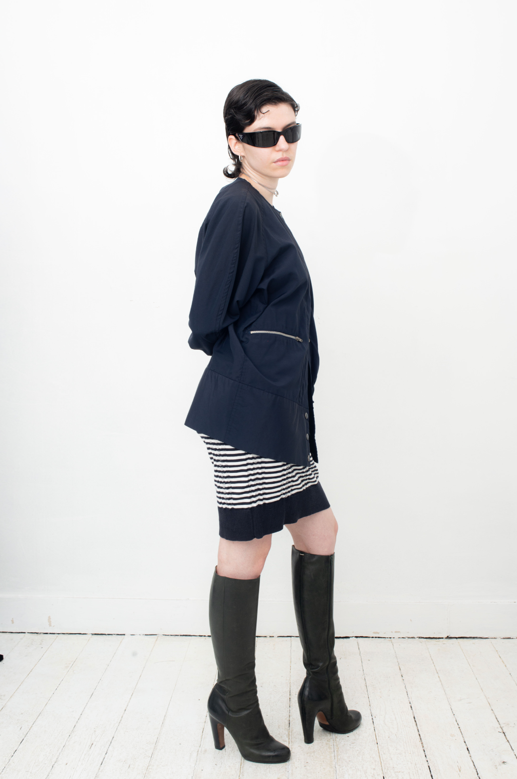 Here worn with a SS 2012 Maison Martin Margiela knit dress, also available online