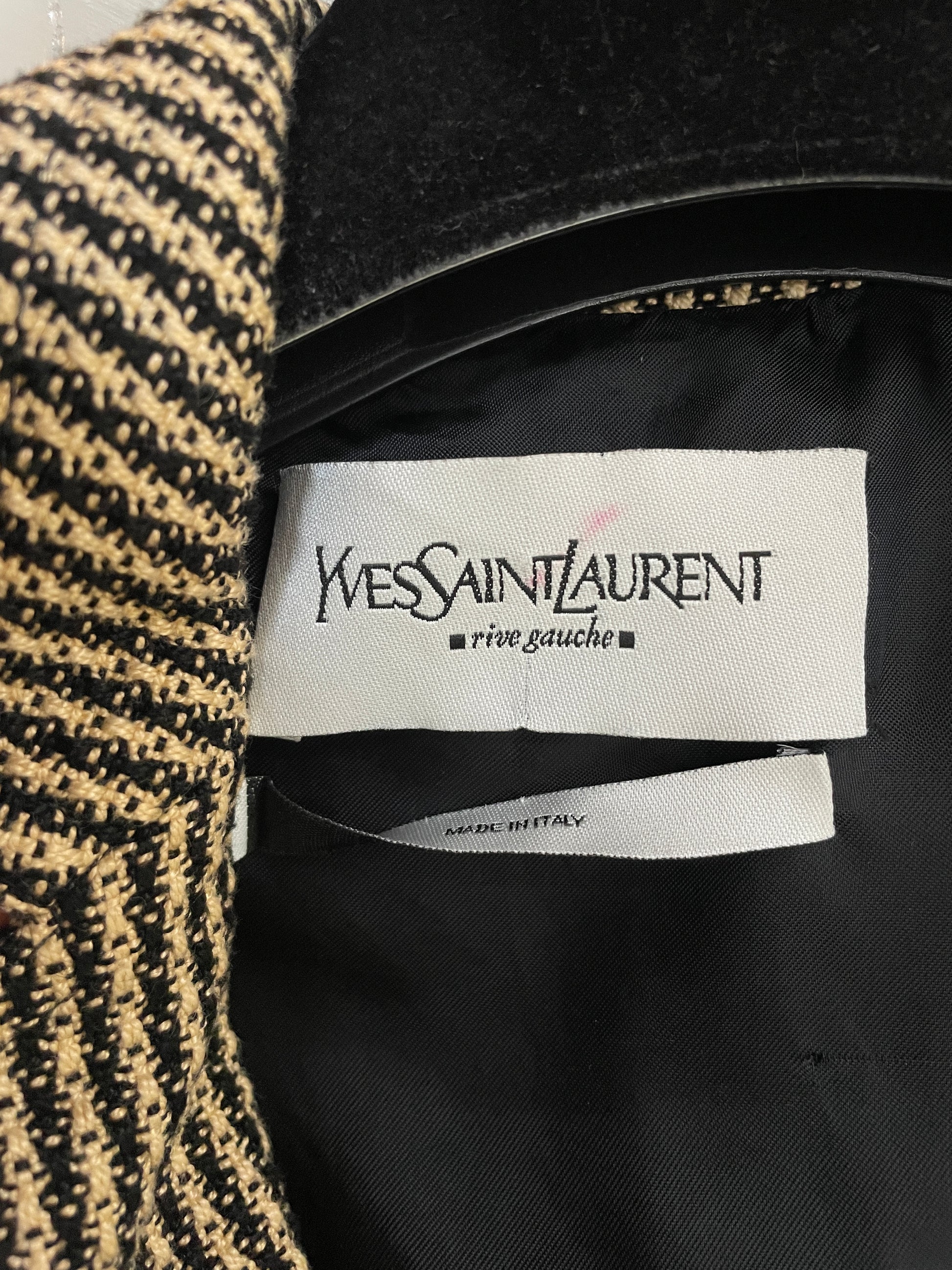 Yves Saint Laurent Fall 2006 single breasted fitted knit jacket in beige and brown.